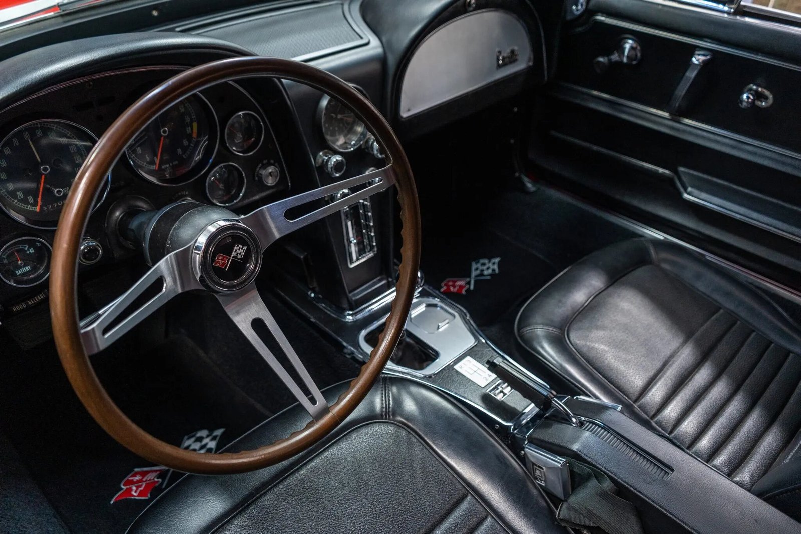 Embroidered mats with the Corvette logo protect the floors, and appointments include a Delco AM/FM radio, electric windows, an analog clock, and lap belts.