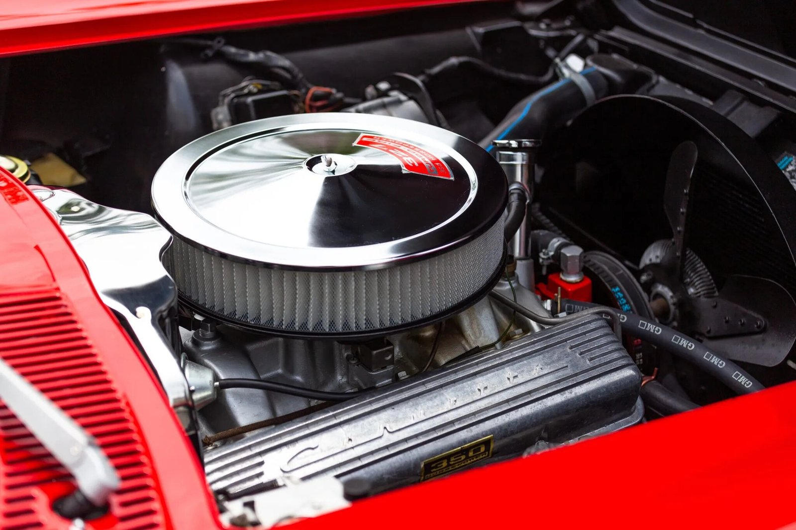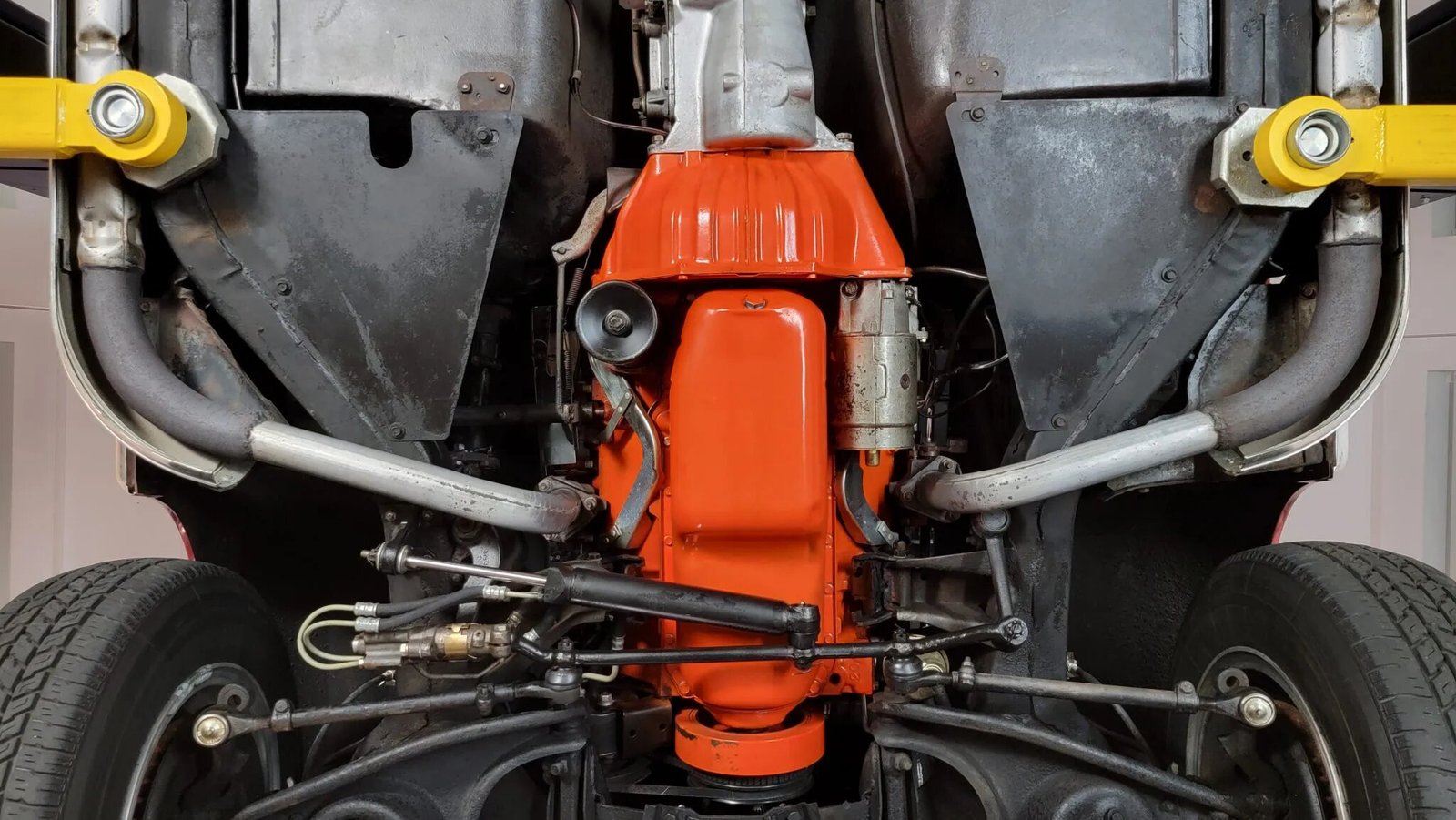 The 327ci V8 sends power to the rear wheels via a close-ratio four-speed manual transmission and a Positraction differential with 4.11:1 gearing.