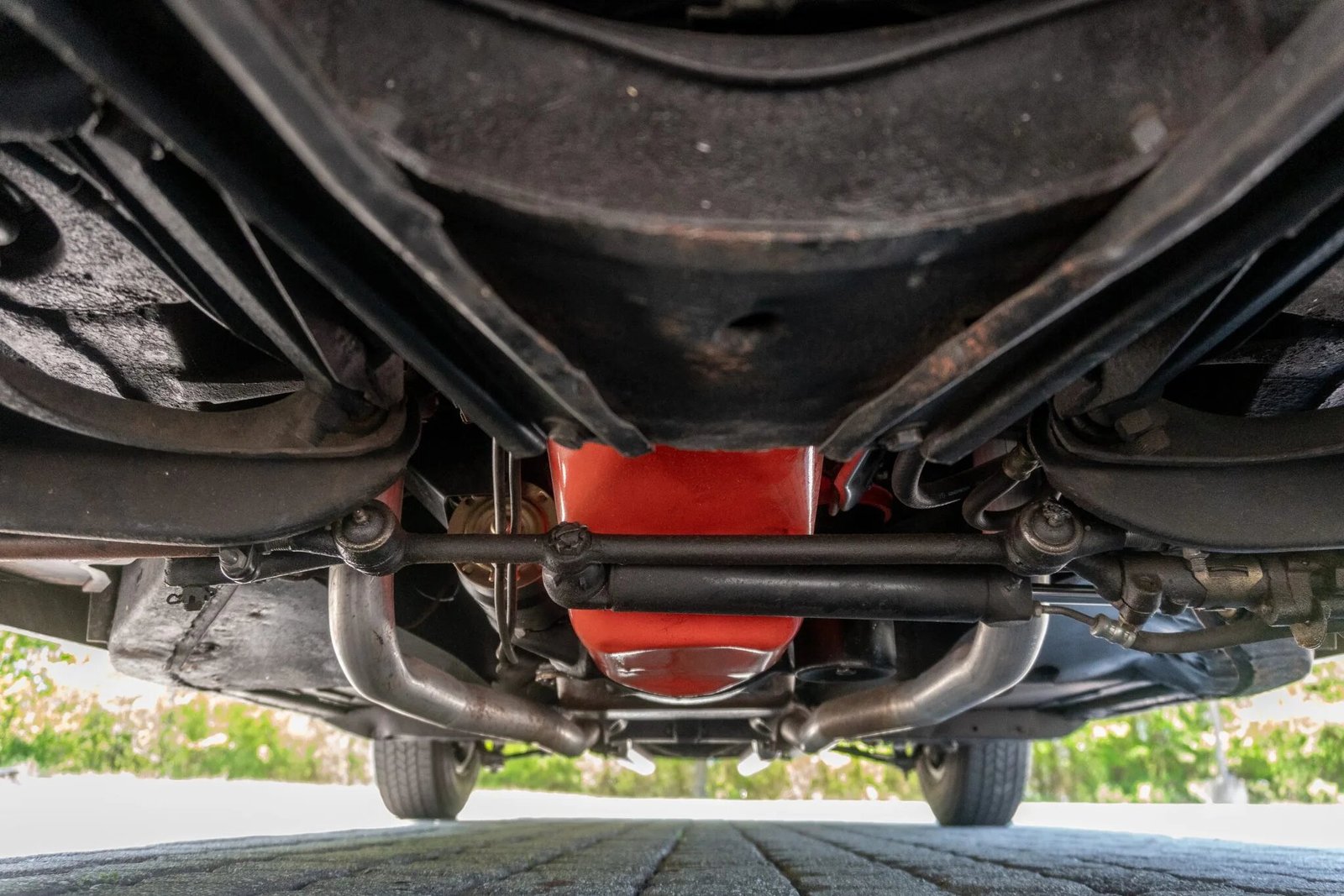 Power is delivered to the rear wheels through a replacement Turbo 350 three-speed automatic transmission and a Positraction rear axle.