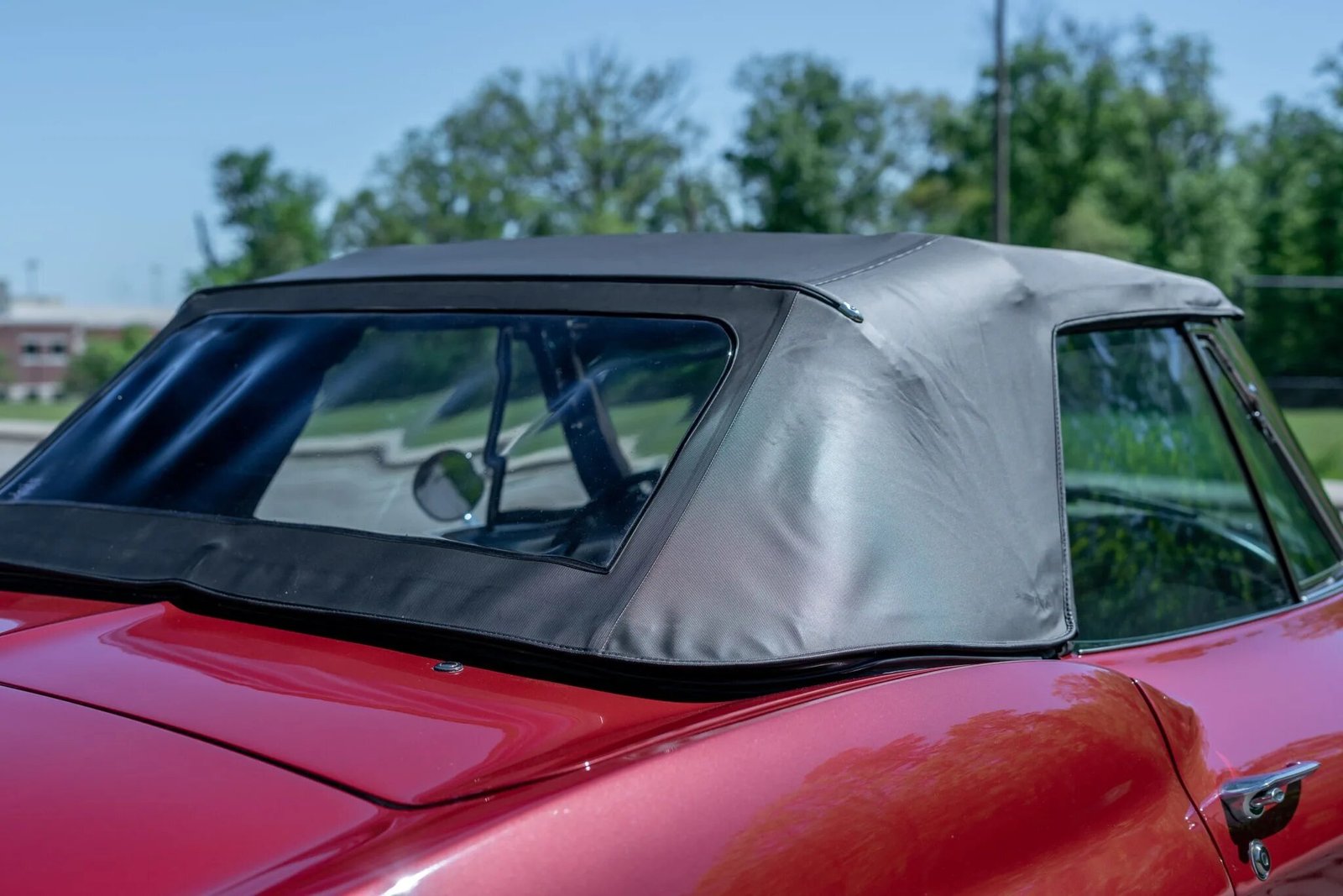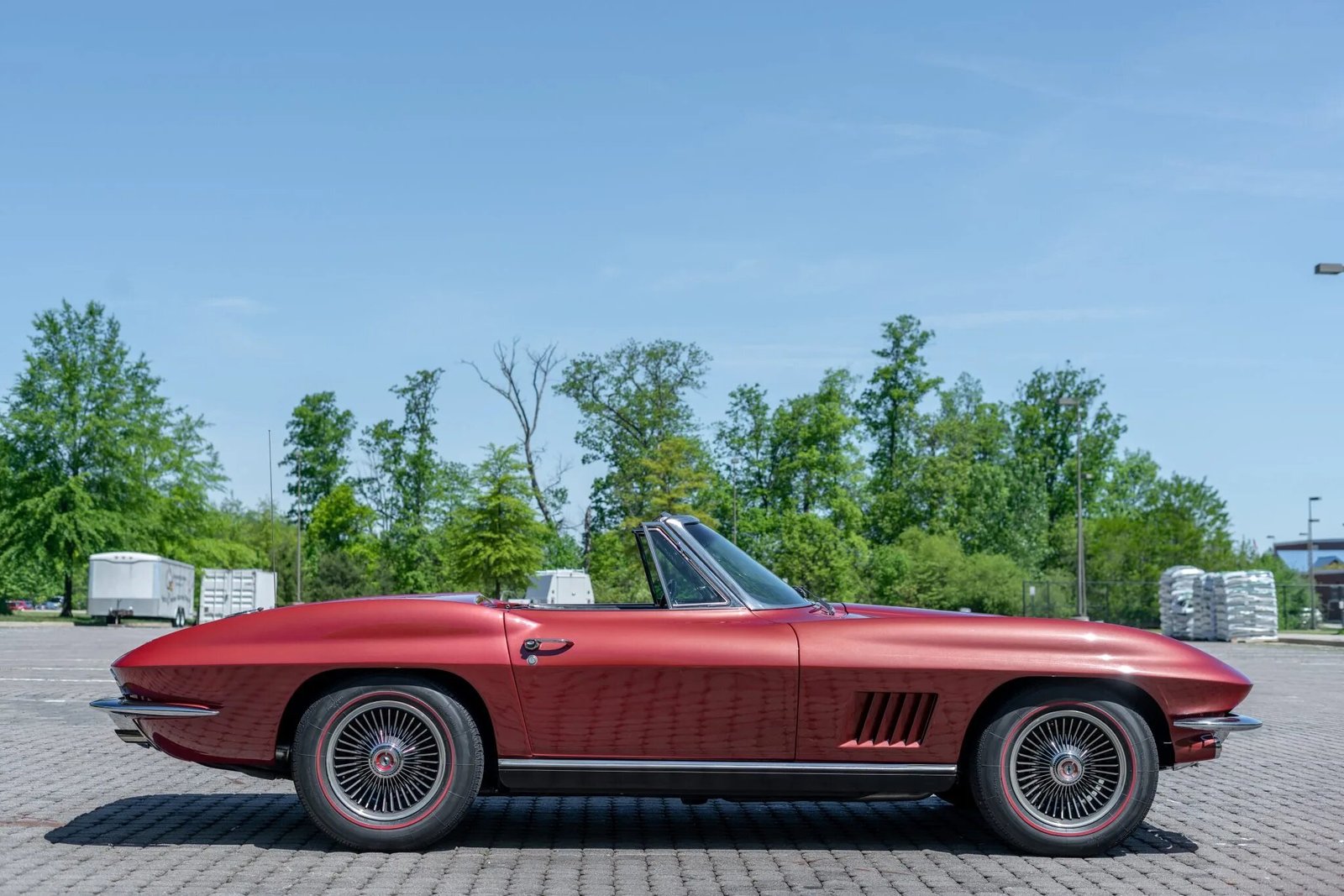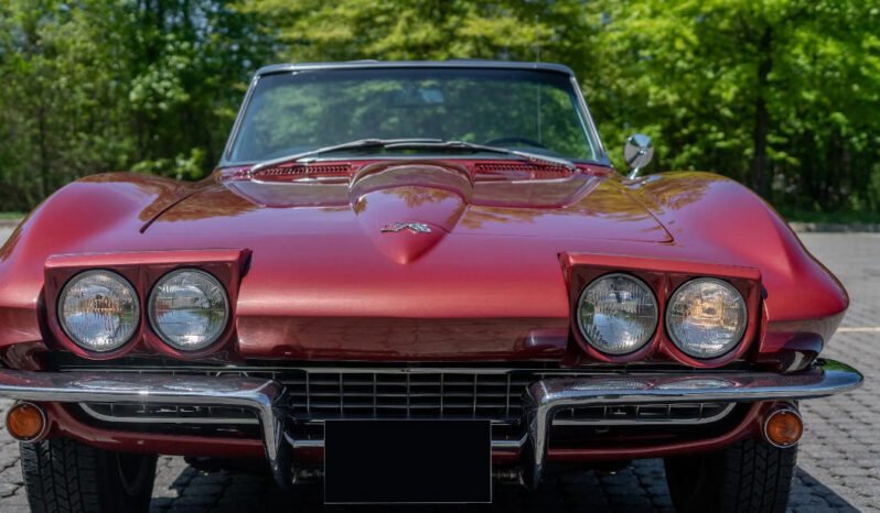 This 1967 Chevrolet Corvette convertible is finished in red over black and powered by a 327ci V8 paired with a replacement Turbo 350 three-speed automatic transmission and Positraction rear axle.