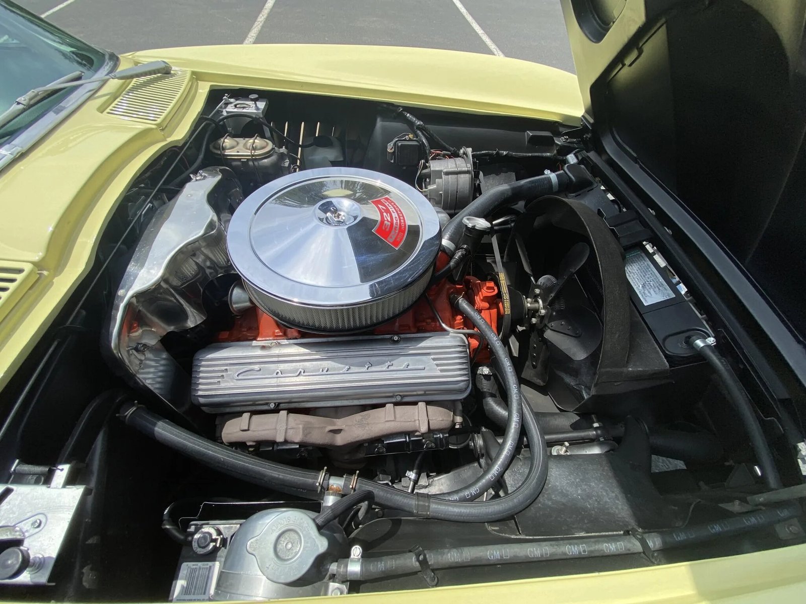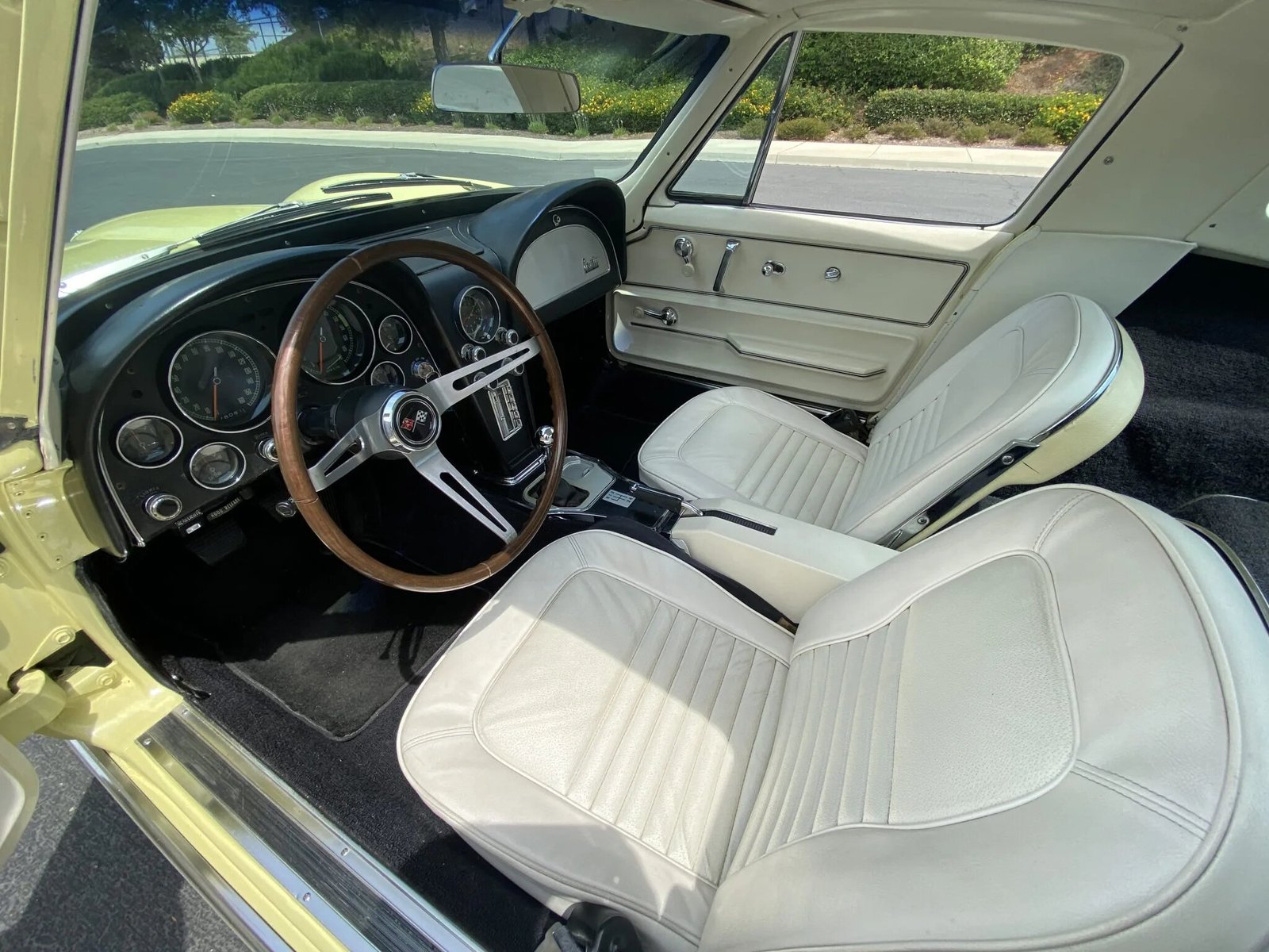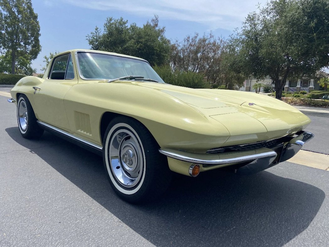 This 1967 Chevrolet Corvette is a Sunfire Yellow coupe, and it is powered by a numbers-matching 327ci V8 paired with a four-speed manual transmission.