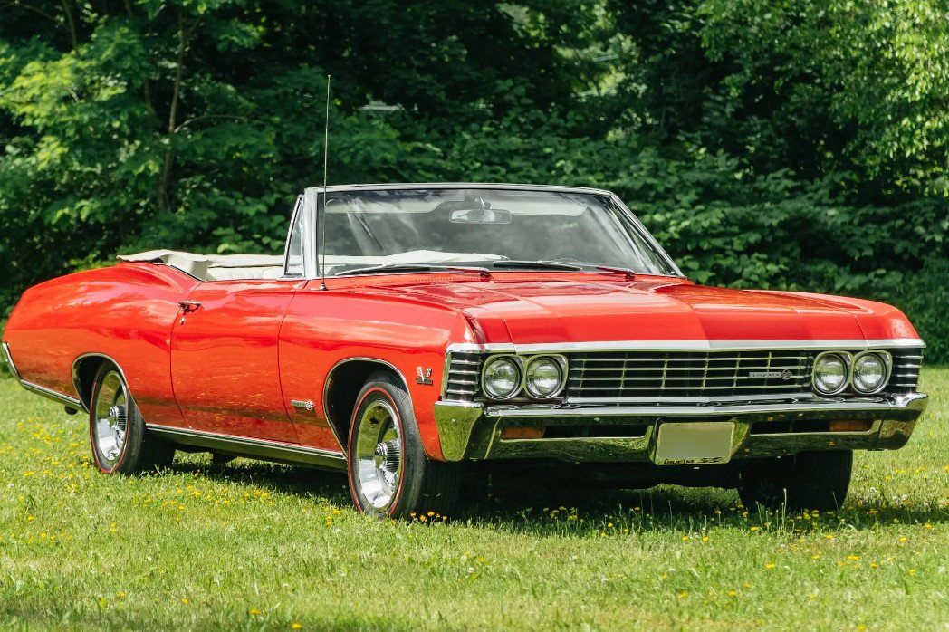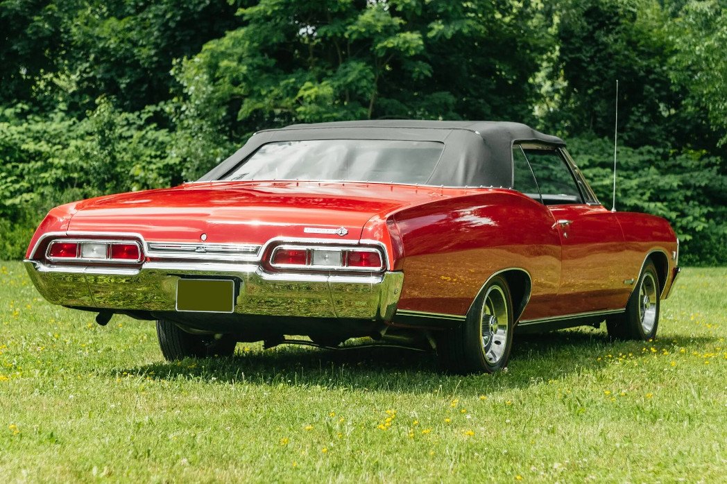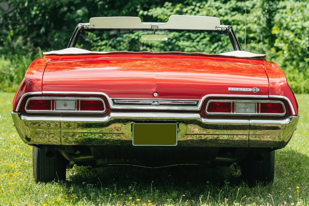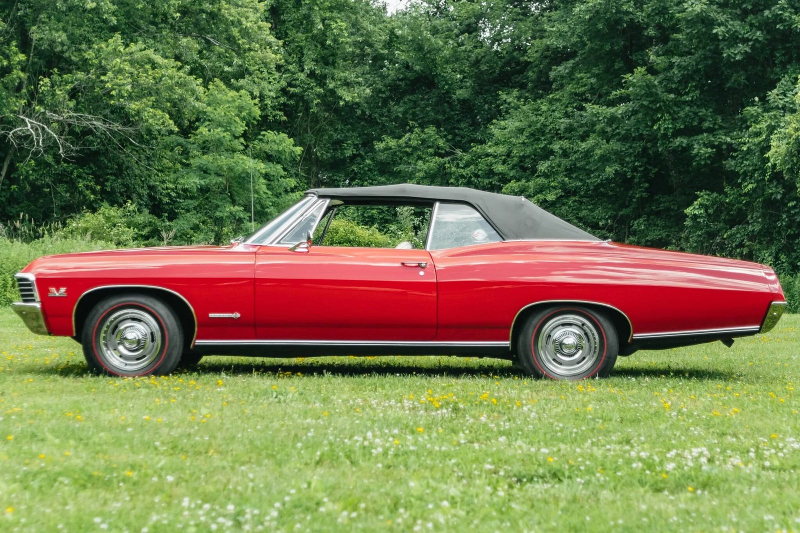 The car is finished in red with a black convertible top over white vinyl upholstery and is powered by a 396ci V8 mated to a four-speed manual transmission.