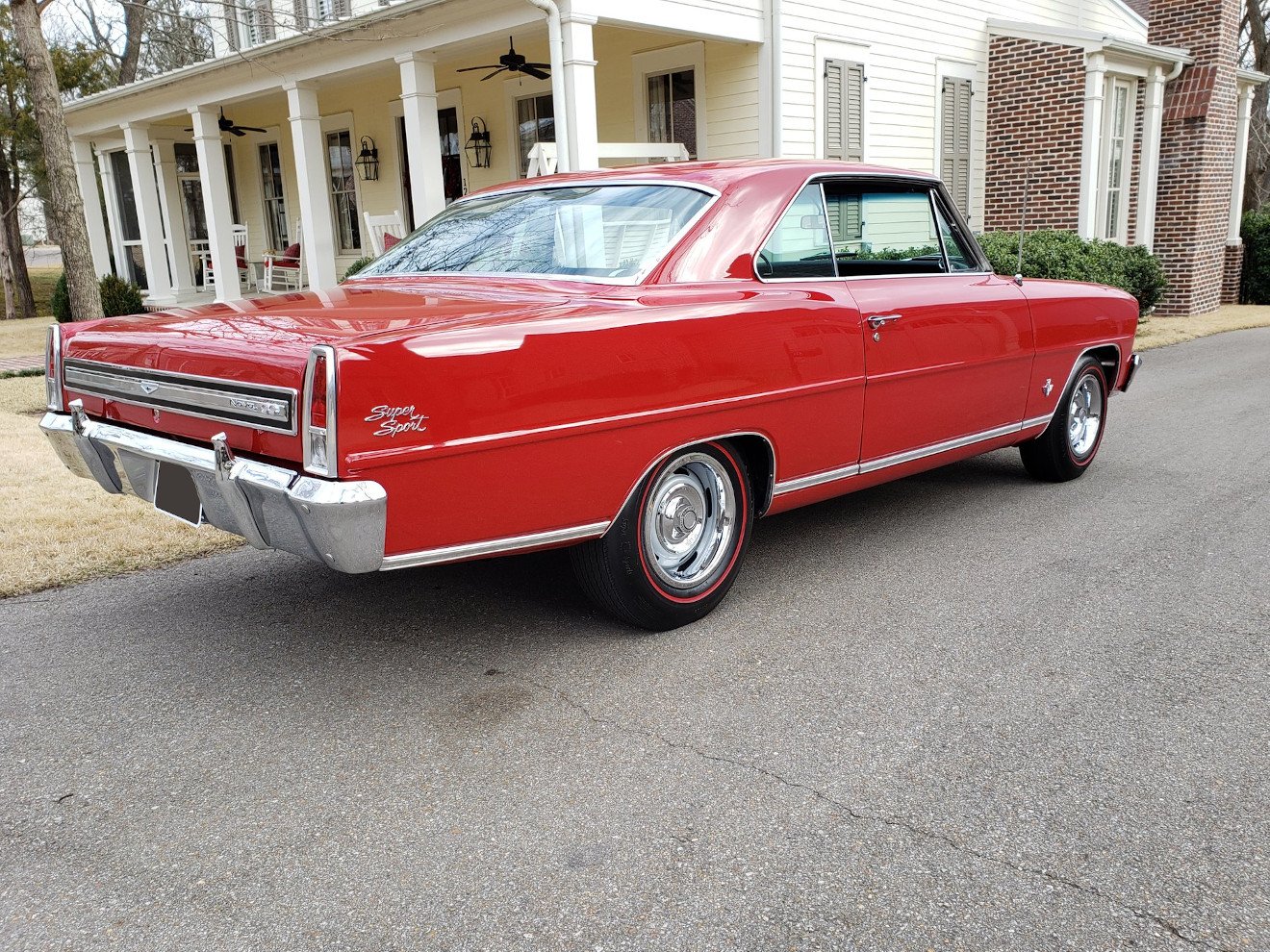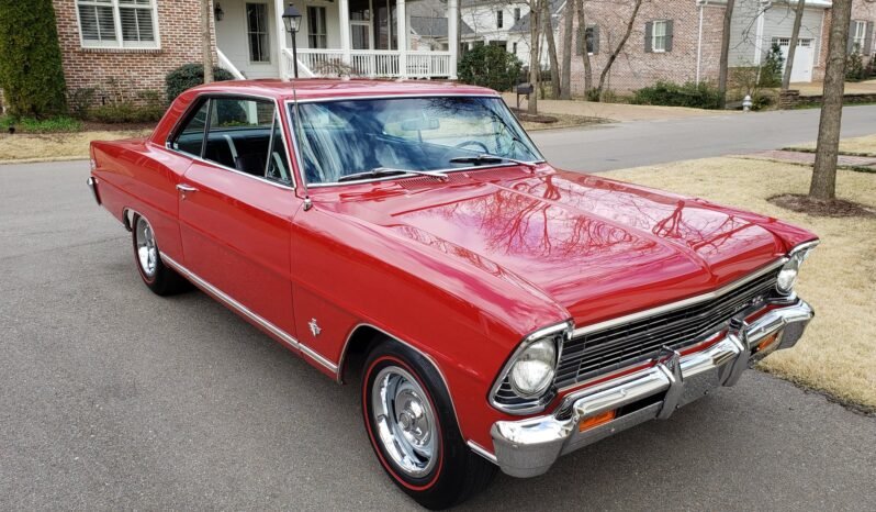 A genuine Super Sport, this car was treated to a meticulous rotisserie restoration. This Nova SS is powered by the L79 350hp 327ci V8 (CE code) with factory 4-speed transmission. The straight and solid body was beautifully refinished in the correct factory shade of Bolero Red. Factory rally wheels and Firestone Redline tires complete the period look, although American Racing Torque Thrust wheels are offered alternatively. Attention to detail carries over to the interior with minor upgrades, including an updated clock and add-on gauges to monitor oil and temp.