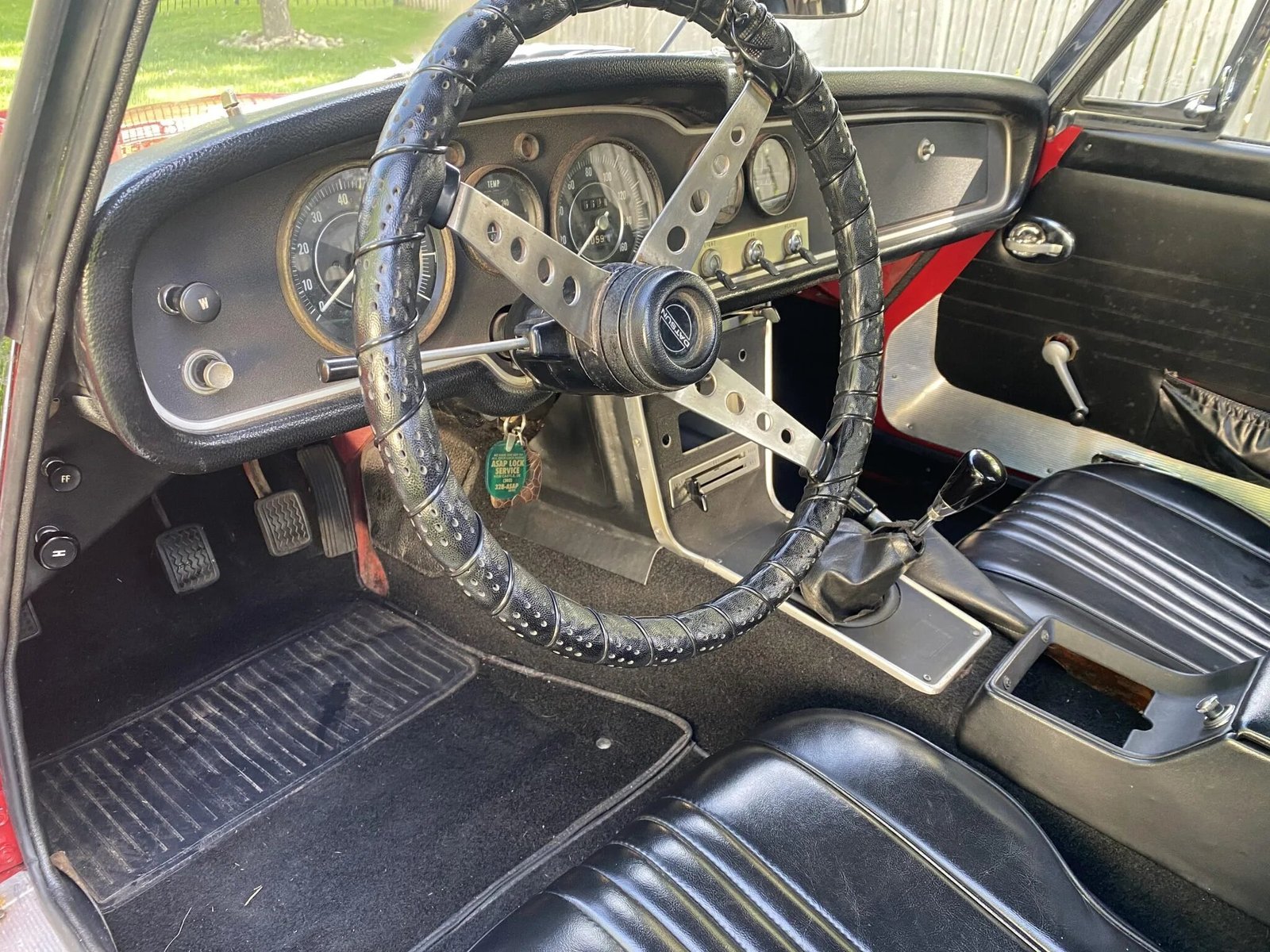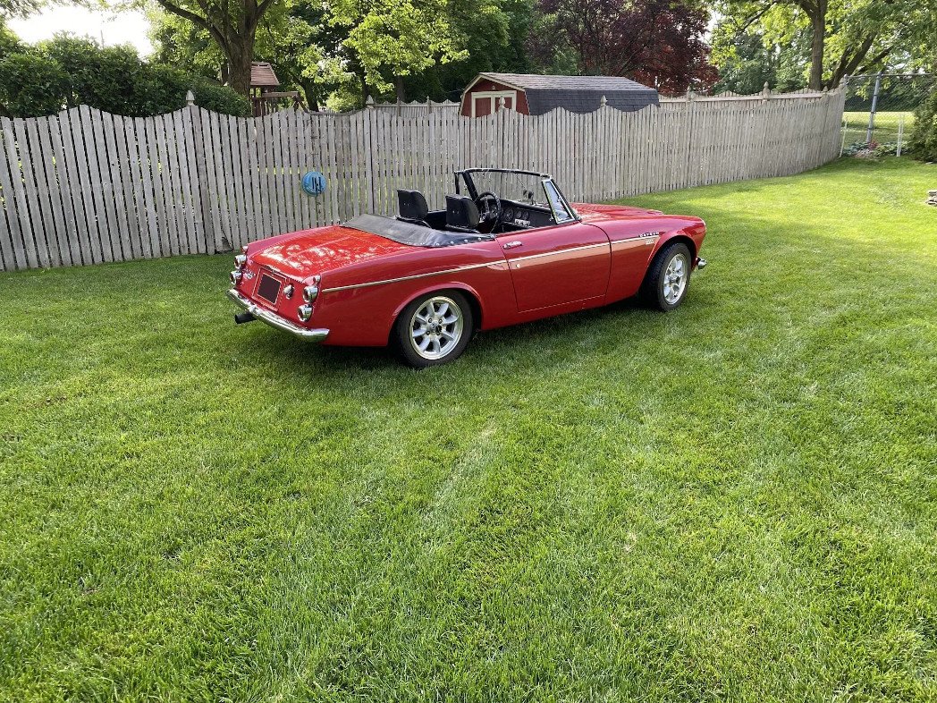 A cosmetic and mechanical refurbishment was completed in 2010. Work at that time included overhauling the replacement 2.0-liter inline-four, refinishing the bodywork in red, and replacing the black soft top. Equipment includes 15″ Panasport wheels, dual Solex carburetors, chrome bumpers and trim, an aluminum radiator, a stainless-steel muffler, and a driver-side door mirror.