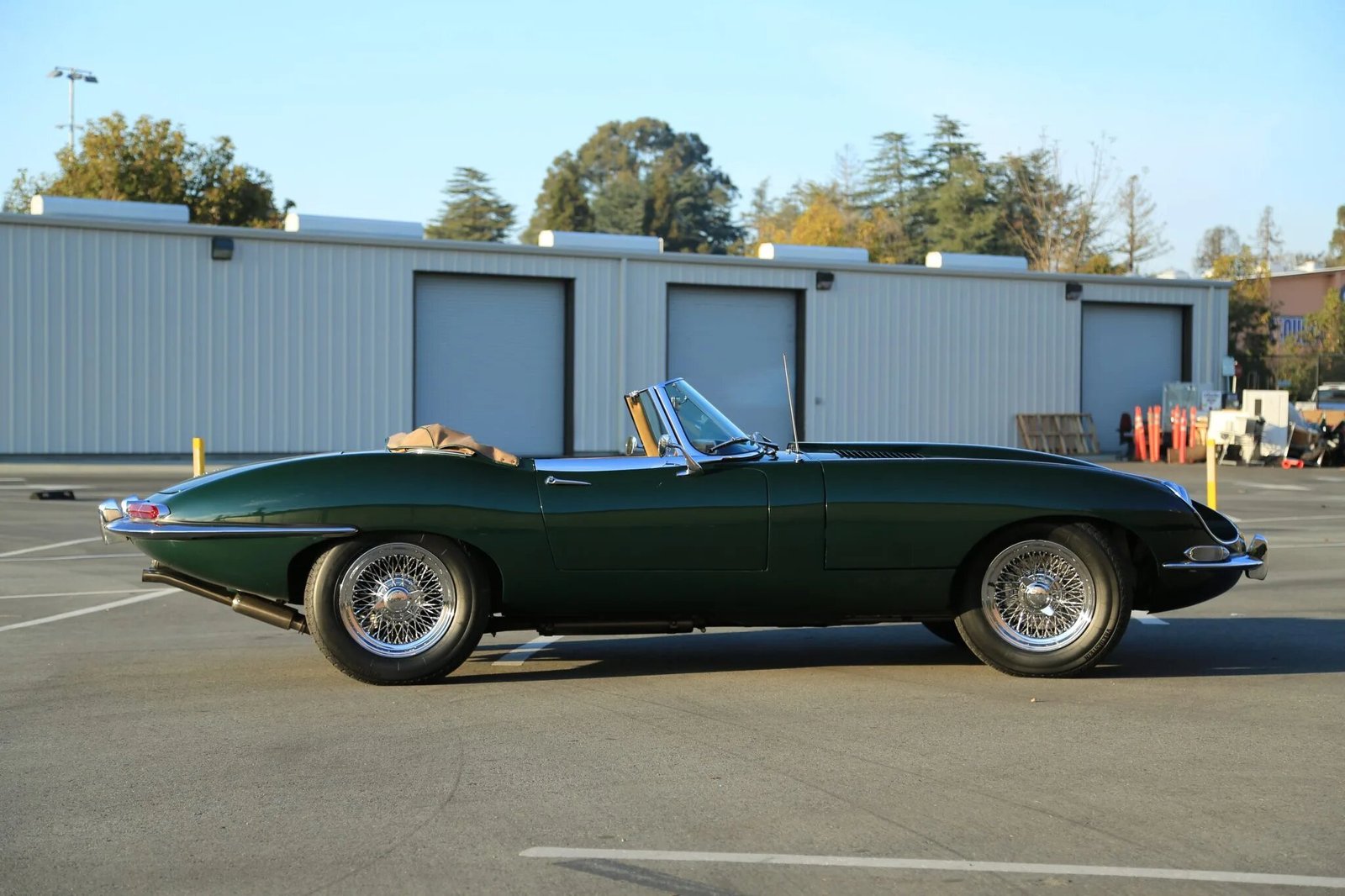 This 1967 Jaguar XKE Roadster is a series I example that is finished in dark green over tan leather and powered by a 4.2-liter DOHC inline-six paired with a Vicarage five-speed manual transmission.