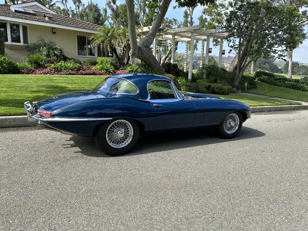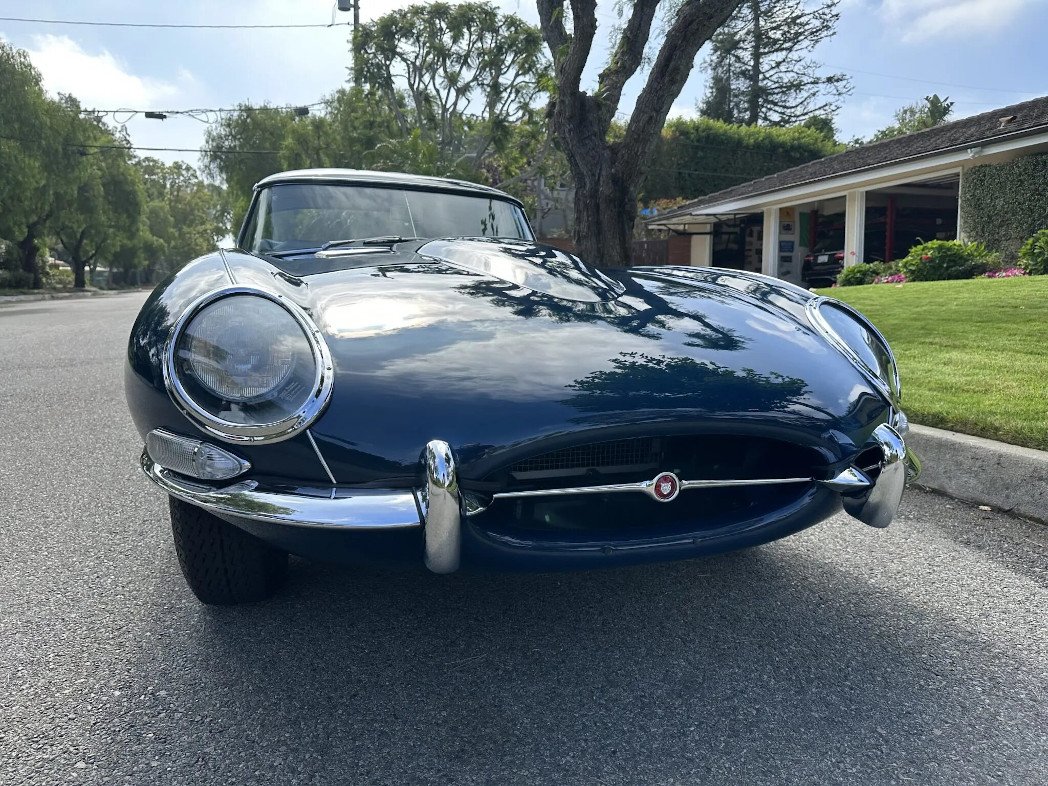 This 1967 Jaguar XKE is a Series I roadster that was completed on October 19, 1966. A subsequent multi-year refurbishment was performed by Classic European Restorations, and completed in 2022. The car is finished in blue over light gray leather upholstery, and power comes from a 4.2-liter inline-six paired with a four-speed manual gearbox. Features include a dark blue soft top, a color-matched hardtop, glass headlight covers, 15″ wire wheels, and four-wheel disc brakes, while modifications consist of a coolant overflow tank sourced from a 1968 XKE and a modern Becker stereo with a retro-style faceplate.