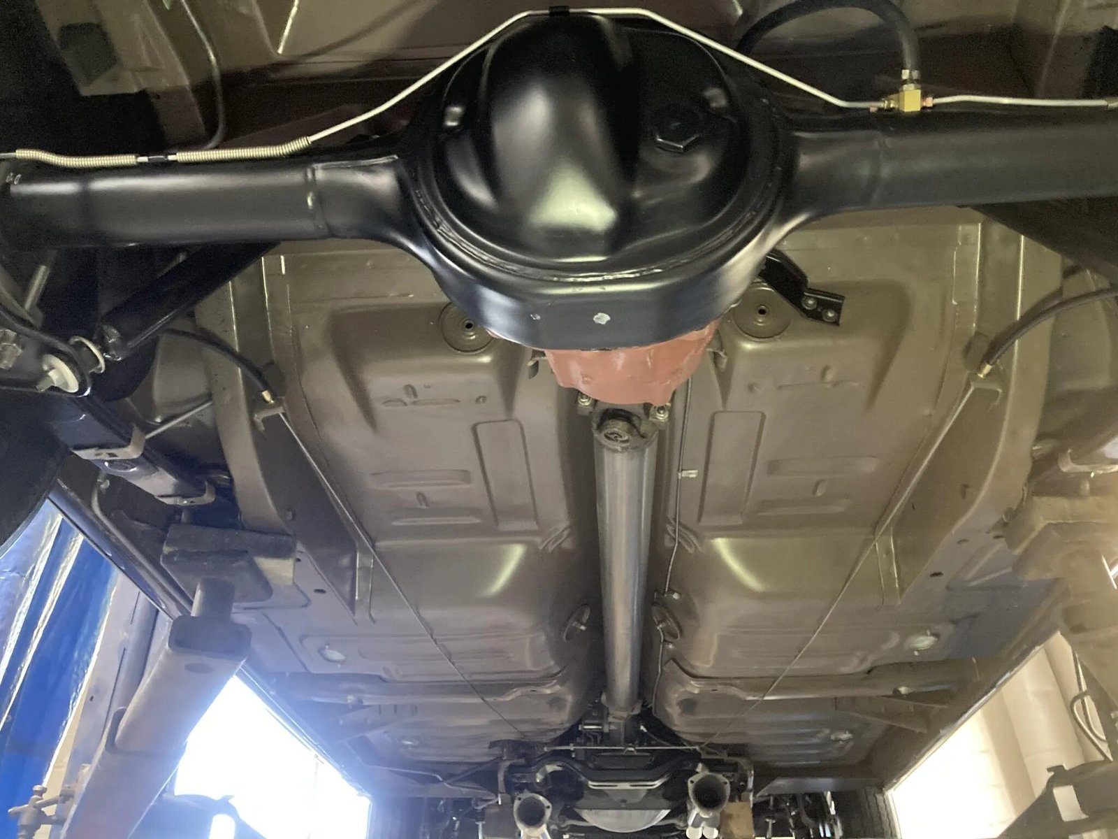 Power is sent to the rear wheels via a Toploader four-speed manual transmission and a 9″ rear end with a Detroit Locker with 4.56:1 gearing. The dual exhaust system terminates behind the front wheels, and the car is not equipped with mufflers. The removed exhaust manifolds, pipes, and oil pan accompany the vehicle.