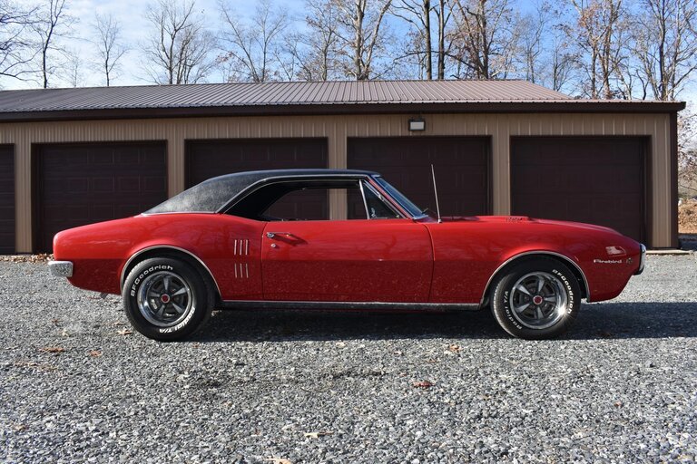 This 1967 Pontiac Firebird 400 coupe was refurbished and is finished in red over black and is powered by a 400ci V8 mated to a TH400 three-speed automatic transmission and a limited-slip differential. Additional equipment includes a black vinyl roof covering, 15″ Rallye II-style wheels, front disc brakes, a traction bar, a four-barrel carburetor, twin hood scoops, power steering, air conditioning, and electric windows. An oil change was carried out in preparation for sale.