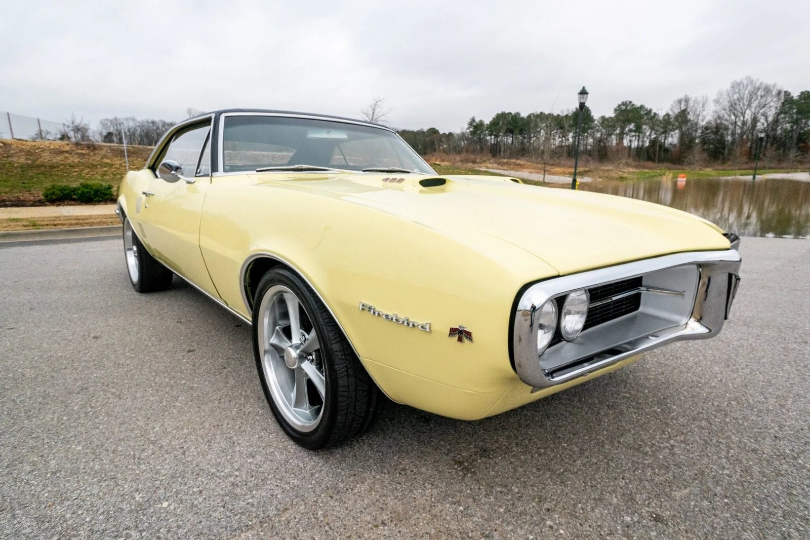 This 1967 Pontiac Firebird coupe was subsequently underwent a refurbishment including a repaint in yellow, reupholstering the interior in black vinyl, rebuilding the 400ci V8 and the four-speed manual transmission, and the installation of power steering, power brakes, and electronic fuel injection.