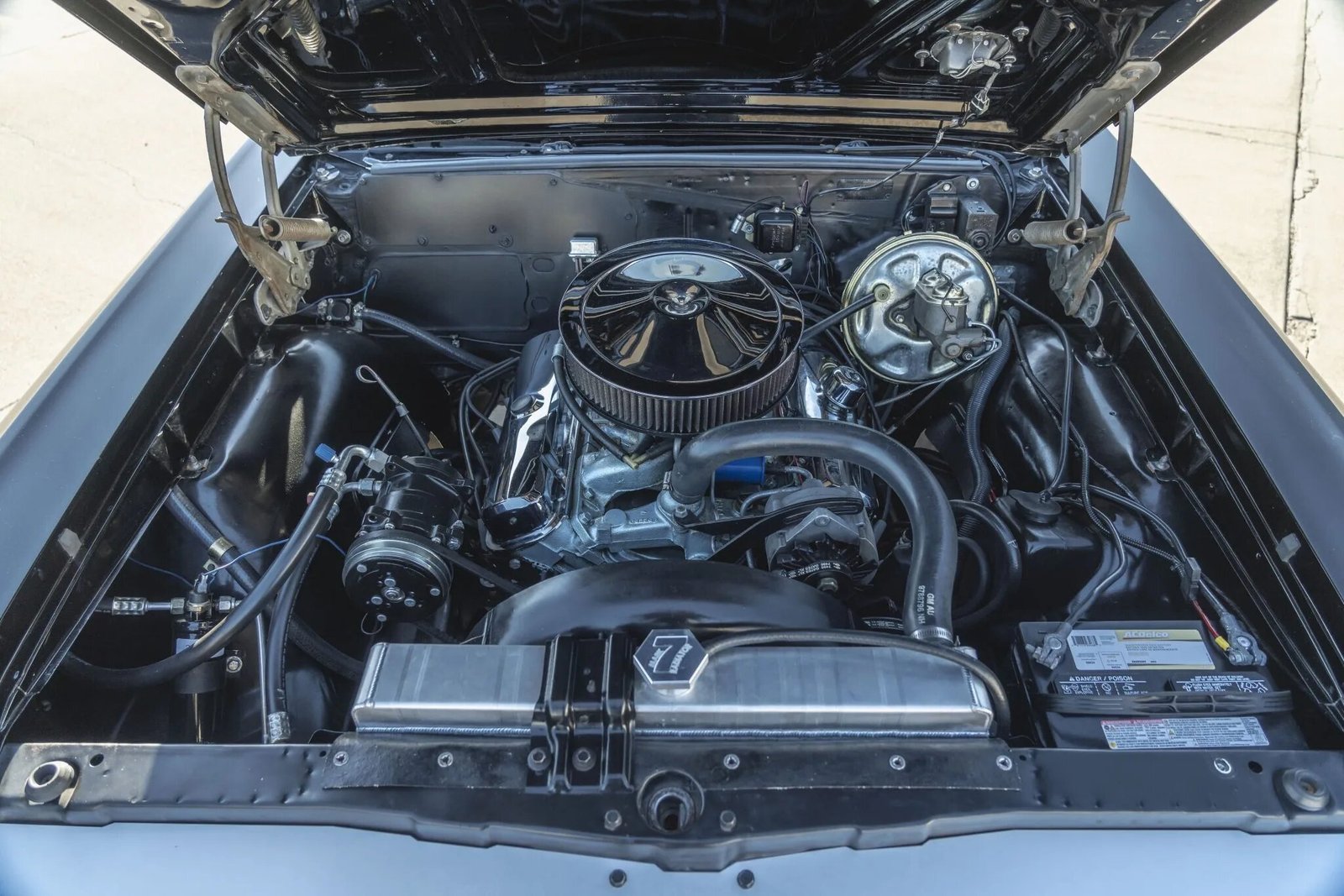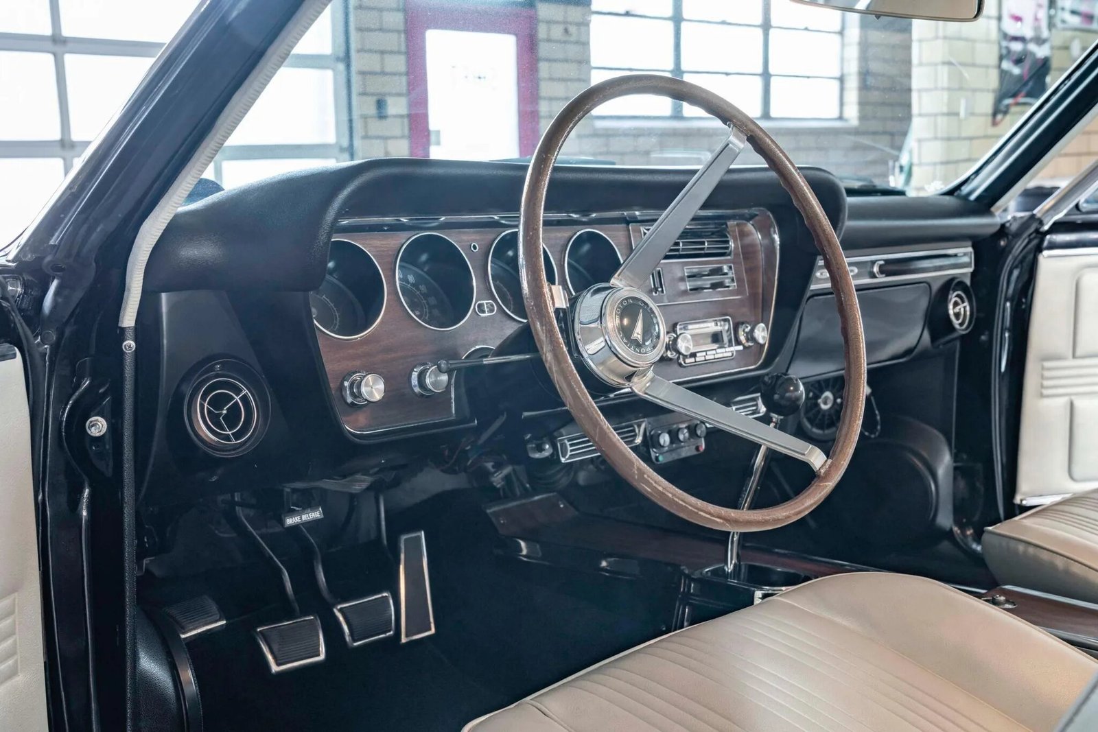 The replacement 400ci V8 have been sourced from a 1967 GTO and is fitted with a Quadrajet carburetor, an aluminum radiator, “670” cylinder heads, high-output exhaust manifolds, and a Pypes exhaust system.