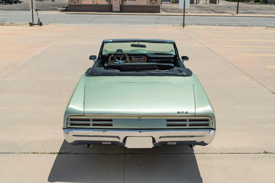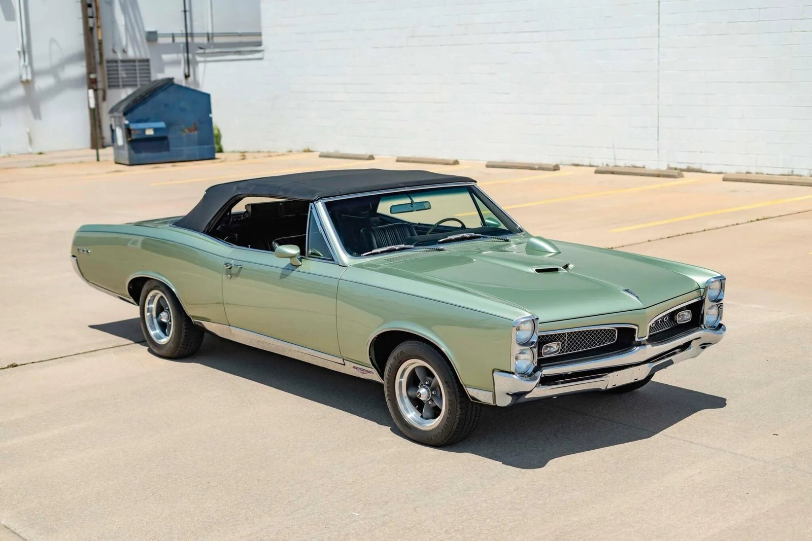 Equipment includes a power-operated convertible top, a hood-mounted tachometer, a split front grille, a hood scoop, dual exhaust outlets, and refreshed chrome bumpers, rocker moldings, window surrounds, and trim.