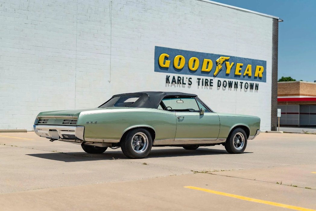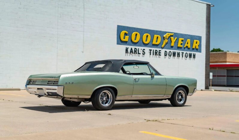 Work included a repaint in Linden Green and installing a 467ci V8 and a modified 2004R four-speed automatic overdrive transmission. Equipment includes a 3.55:1 rear differential, a black soft top, black vinyl upholstery, 15″ Halibrand wheels, front disc brakes, a custom exhaust system, an aluminum radiator, a Vintage Air climate control system, Dakota Digital gauges, a wood-trimmed steering wheel, and an AM/FM stereo with aftermarket speakers.