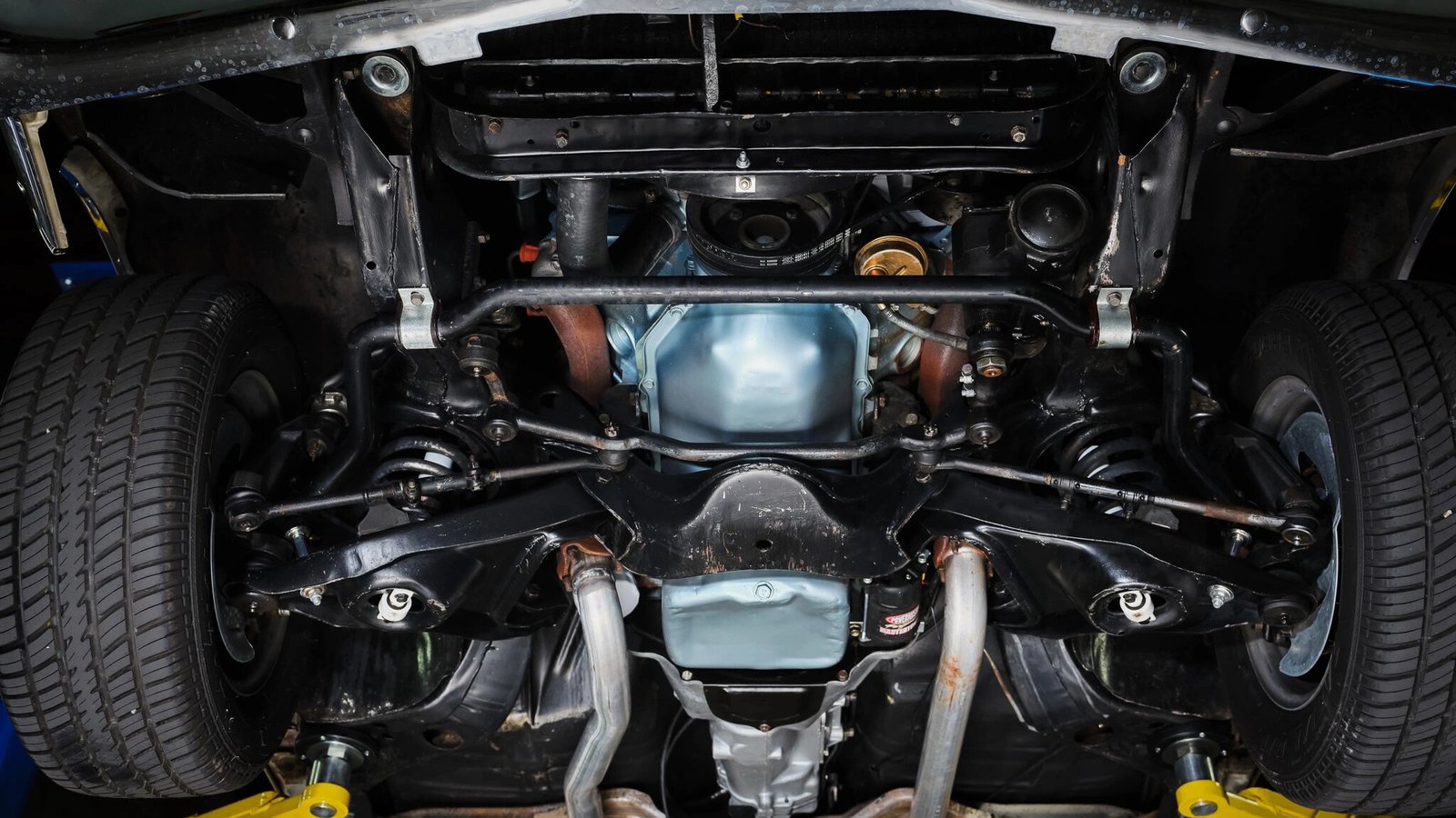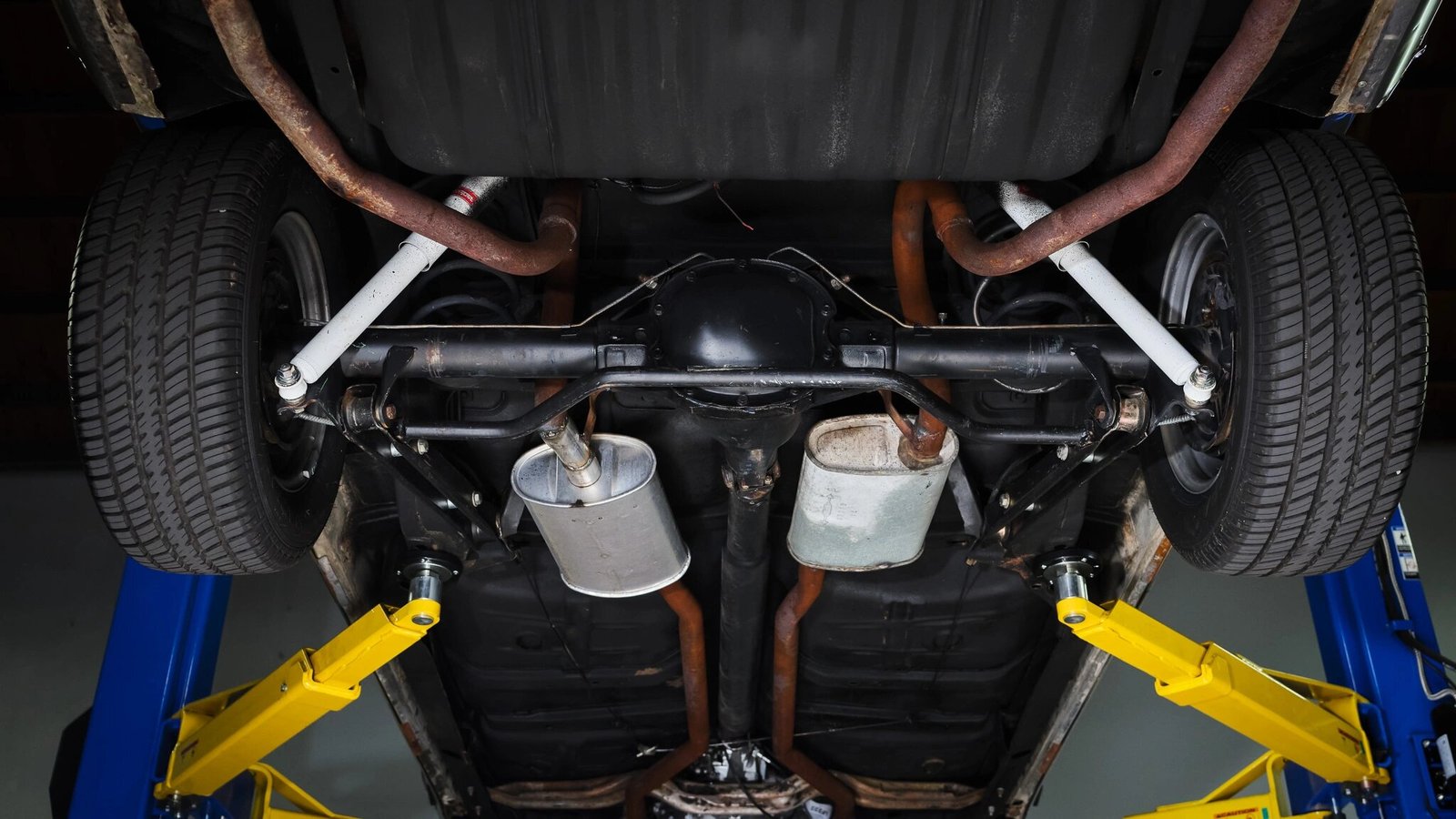 15″ Rallye II wheels are wrapped in 235/60 Cooper Cobra Radial GT tires. Aftermarket Quickor Garage front and rear sway bars have been added, and braking is handled by front discs and rear drums.