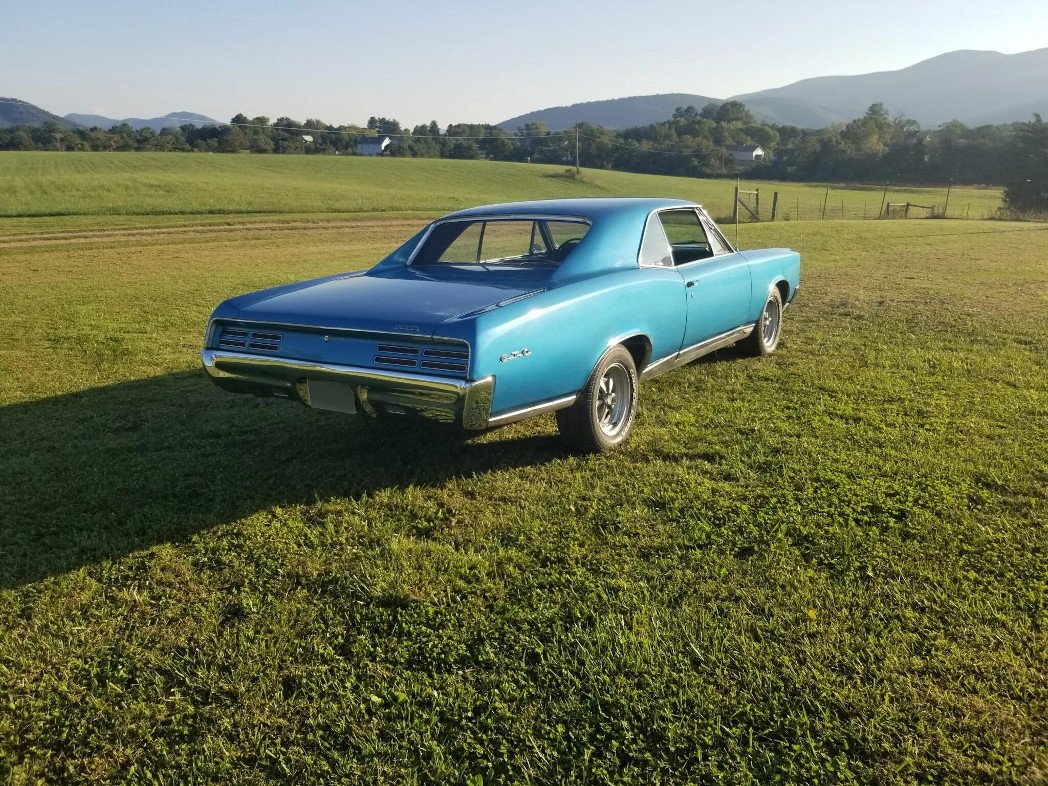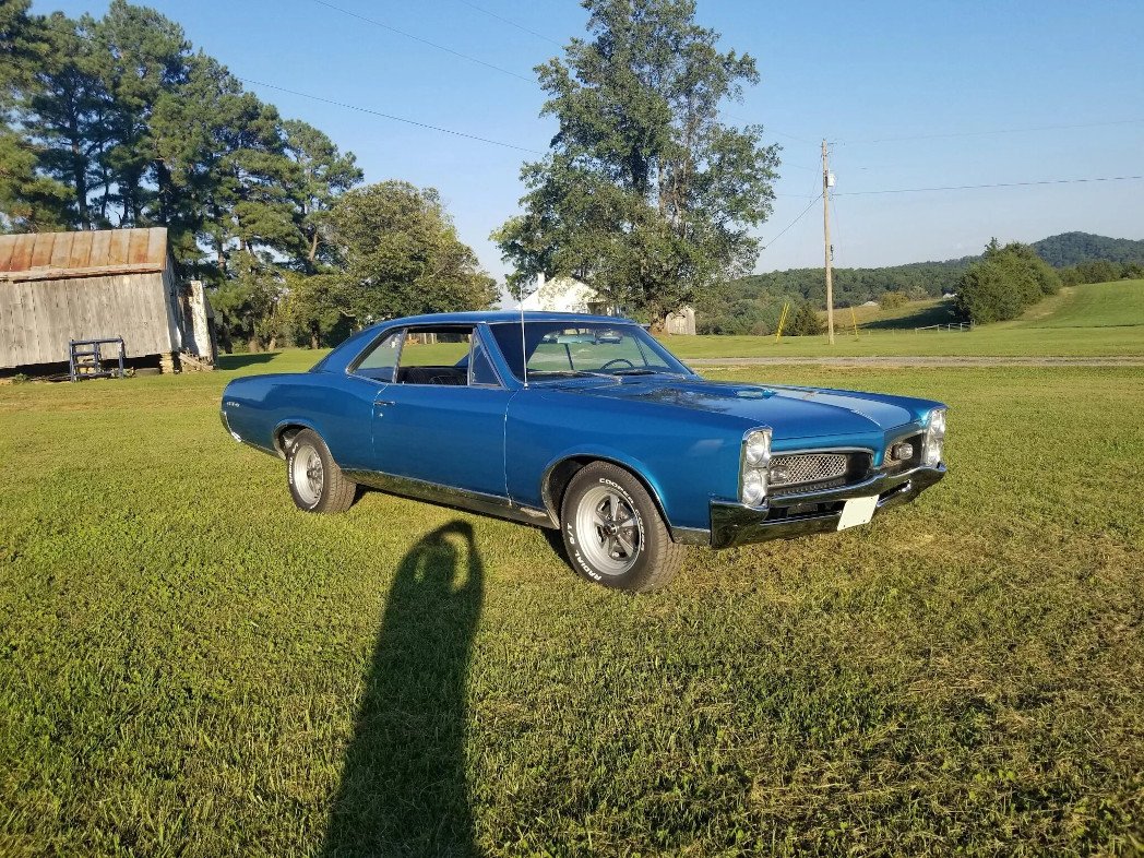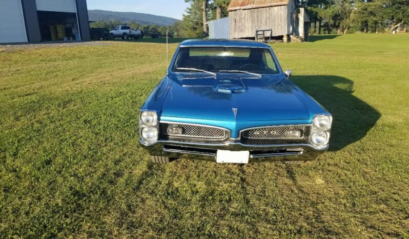 This 1967 Pontiac GTO hardtop is finished in blue over black vinyl upholstery and powered by a 400ci V8 mated with a Muncie four-speed manual transmission and a 12-bolt rear axle. Equipment includes a Hurst shifter, faux woodgrain interior trim, a Sony AM/FM/cassette stereo, power steering, 15″ Rally II wheels, a PerTronix electronic ignition, a Rochester Quadrajet four-barrel carburetor, and a dual exhaust system.
