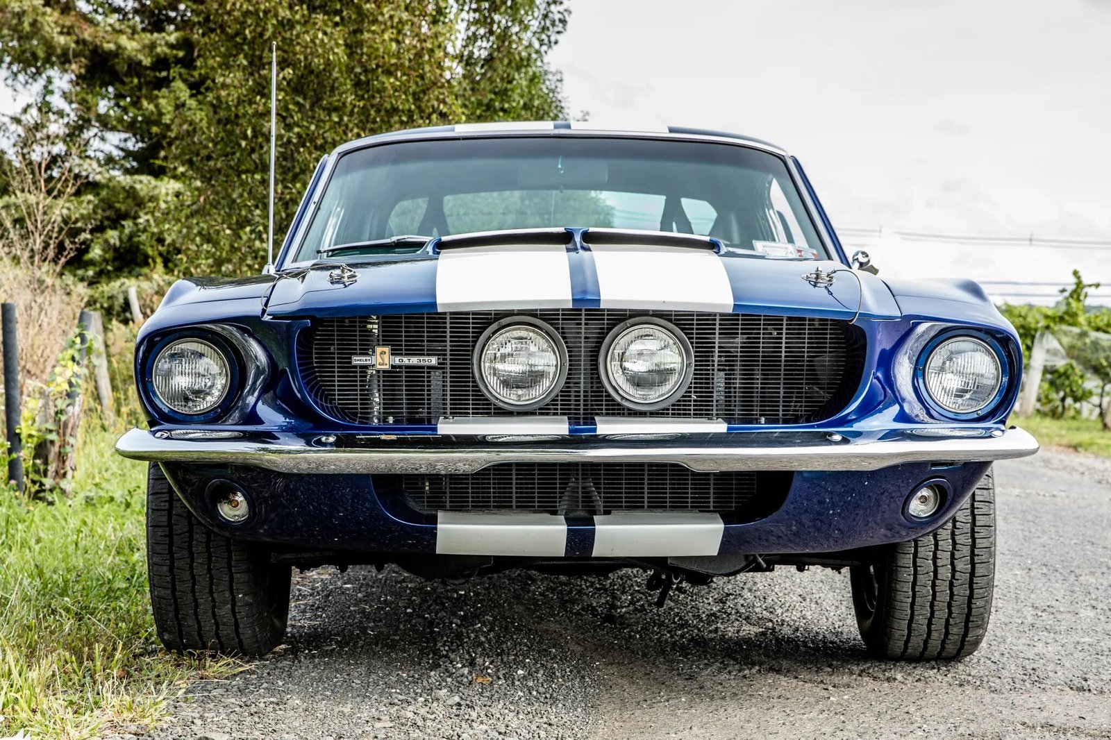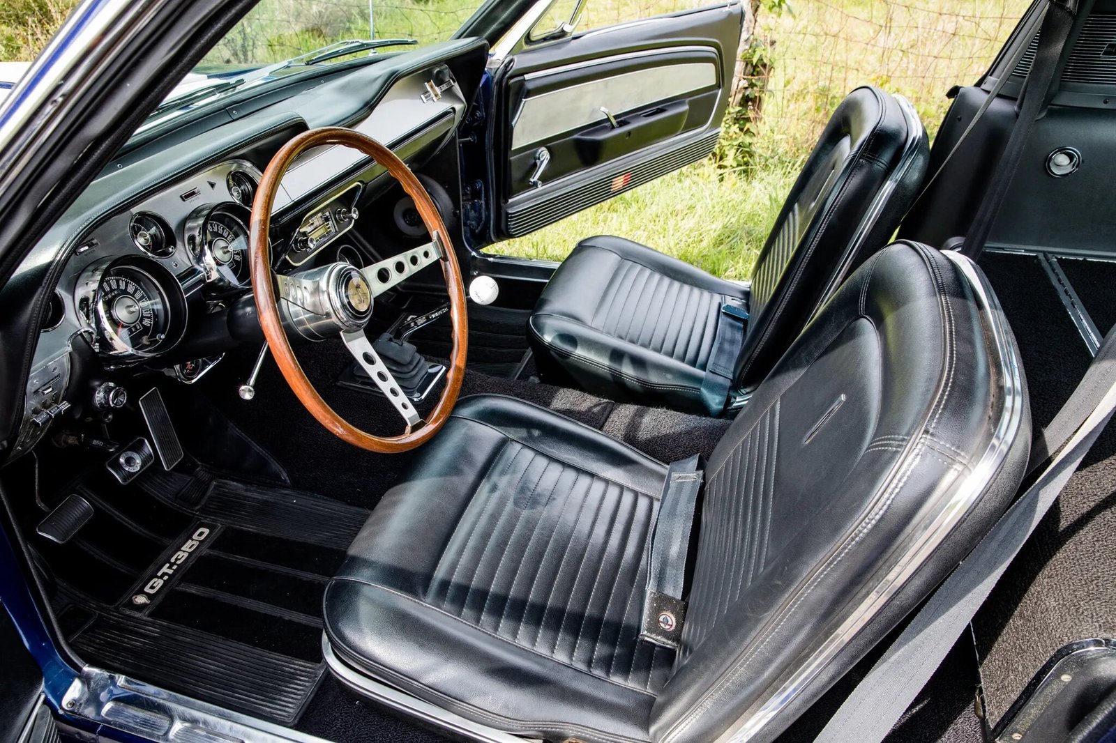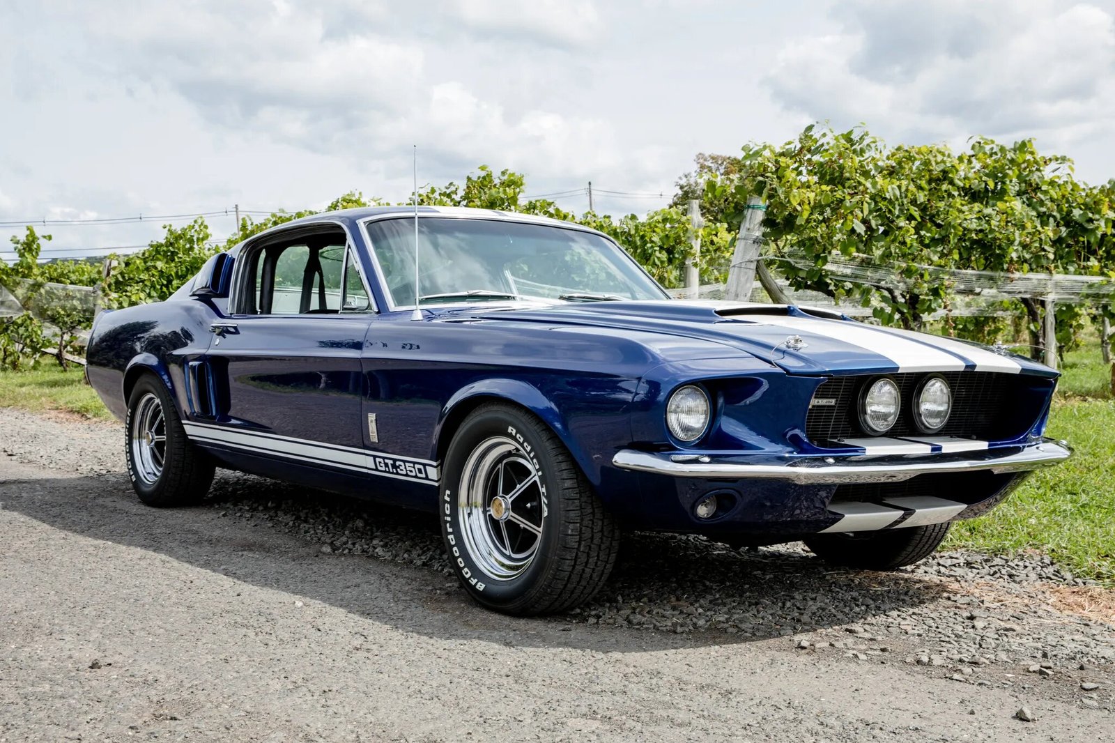This 1967 Shelby Mustang GT350 is one of a reported 1,174 fastback examples ordered for the model year and one of just 821 cars equipped with a four-speed manual transmission. Bearing serial #0102, is finished in blue with white stripes over black vinyl upholstery, the car is powered by a supercharged 289ci HiPo V8 equipped with the Extra Cooling Package. Additional features include 15” Magstar wheels, power steering, power-assisted front disc brakes, the Interior Decor Group, three-point front seat belts, a fold-down rear seat, and an aftermarket stereo.