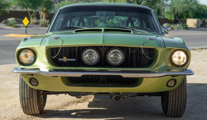 Design features introduced for 1967 Shelby Mustangs included an extended fiberglass nose panel and an elongated fiberglass hood with a functional scoop.