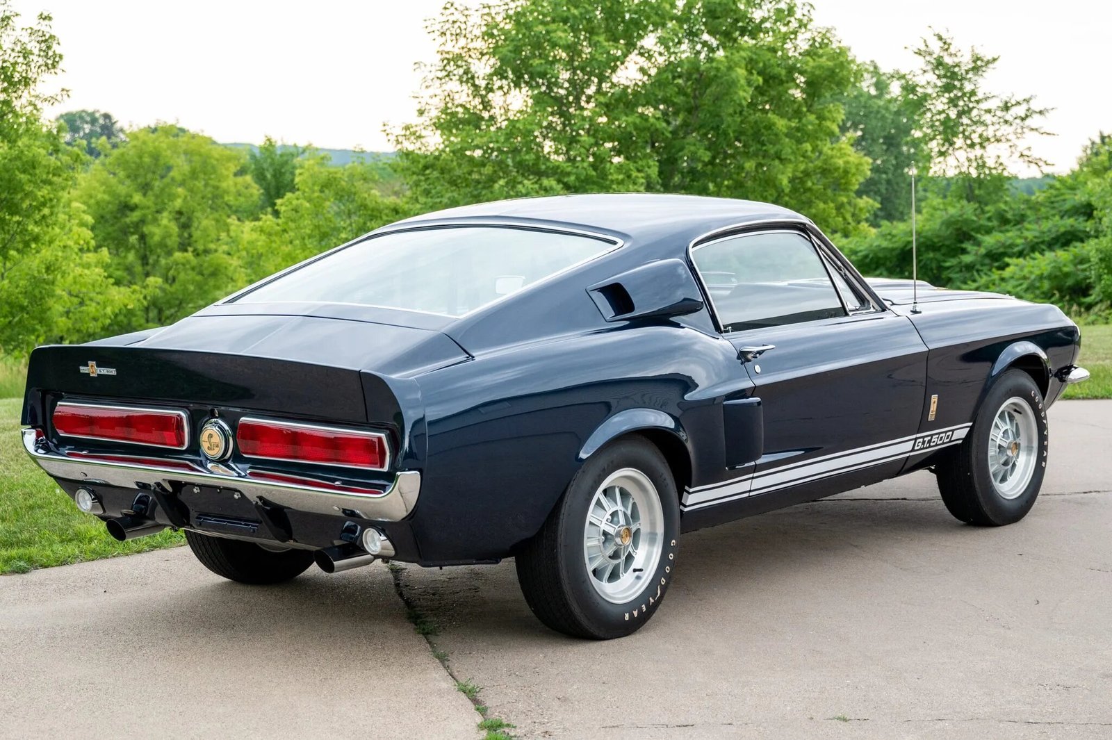 This 1967 Shelby GT500 is one of 2,048 fastbacks produced for the model year and was delivered new to J.D. Ball Ford of Miami, Florida in February of 1967. Finished in Nightmist Blue over black, this Shelby is powered by a 428ci Police Interceptor V8 paired with a four-speed manual transmission. Equipment includes the optional extra cooling package, power steering, power front disc brakes, a tachometer, three-point front seatbelts, Stewart Warner auxiliary gauges, and a push-button AM radio.