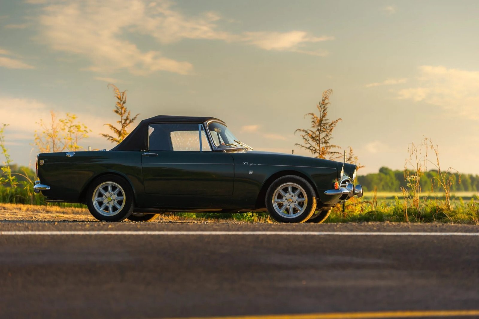 This 1967 Sunbeam Tiger Mk 1A is finished in Forest Green over black vinyl and powered by a 260ci Ford V8 paired with a four-speed manual transmission.