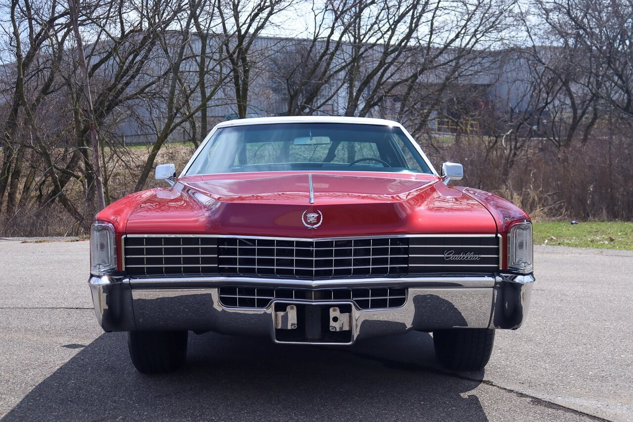 This 1968 Cadillac Eldorado is finished in metallic red over black leather, and is powered by a 472ci V8 that drives the front wheels via a Turbo-Hydramatic automatic transmission.