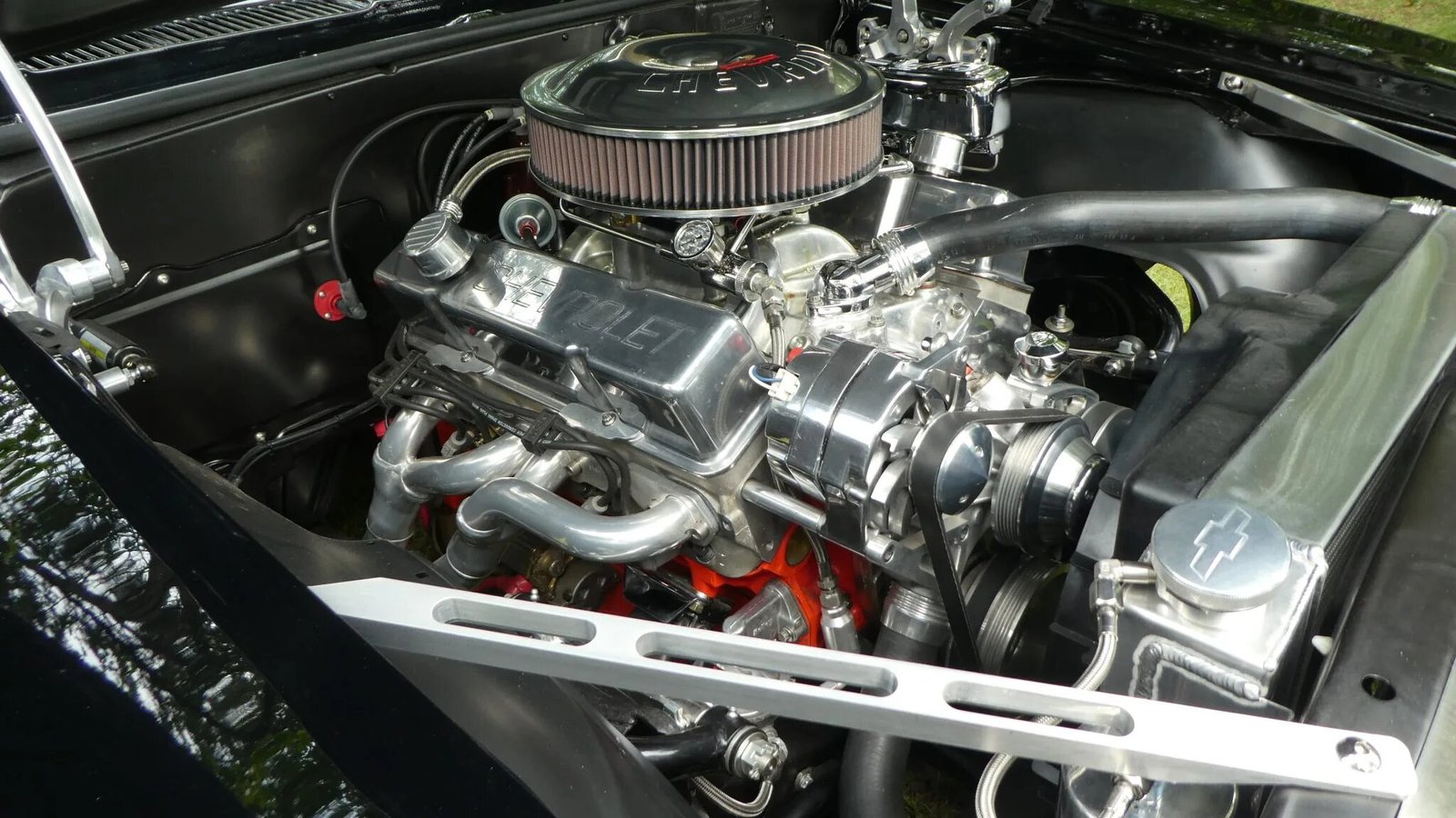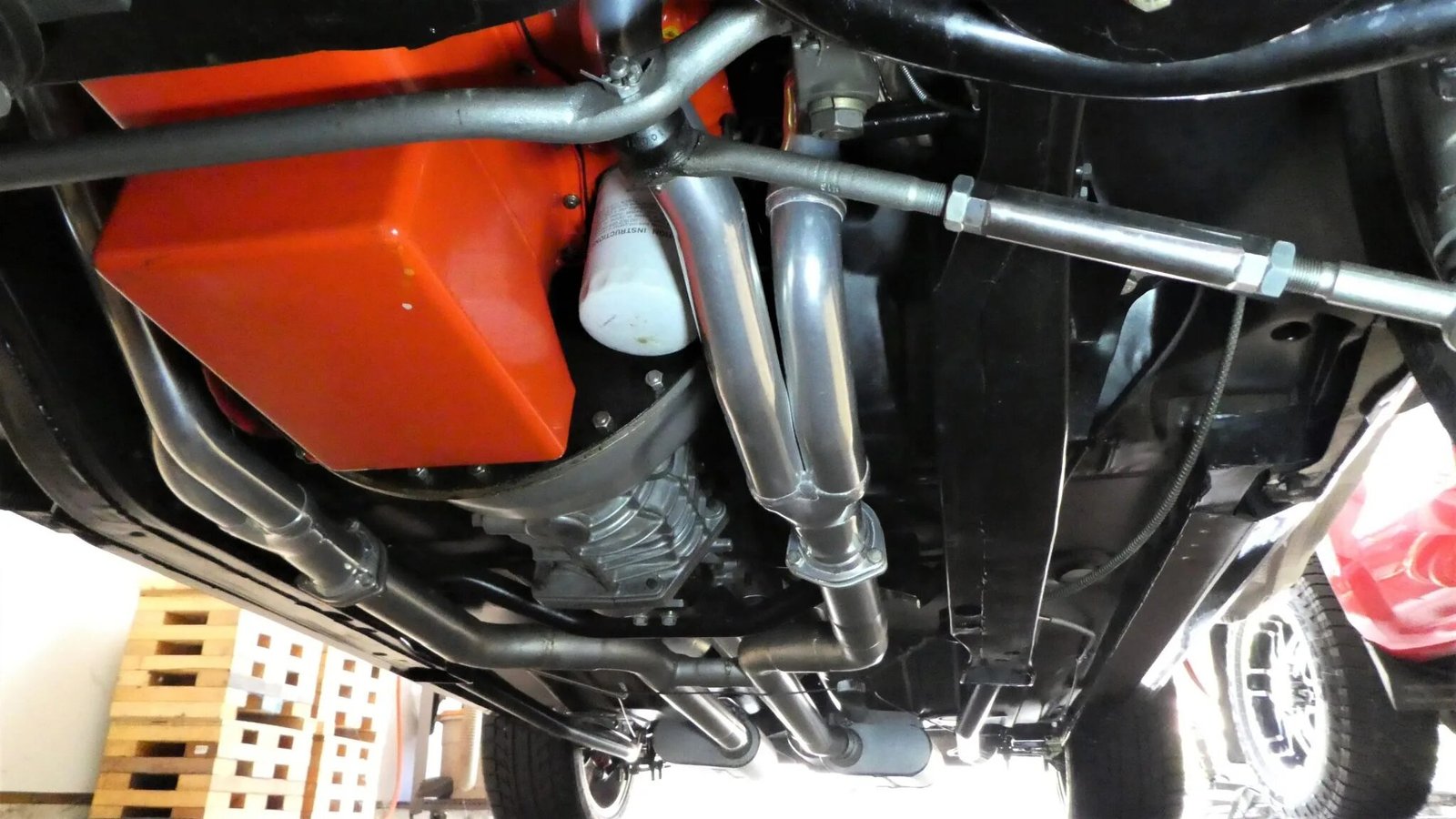 The quarter panels, roof, floor pan, trunk floor, and rear deck cowl were replaced and the car was refinished in black with a gray front accent stripe as part of a refurbishment completed in 2013.