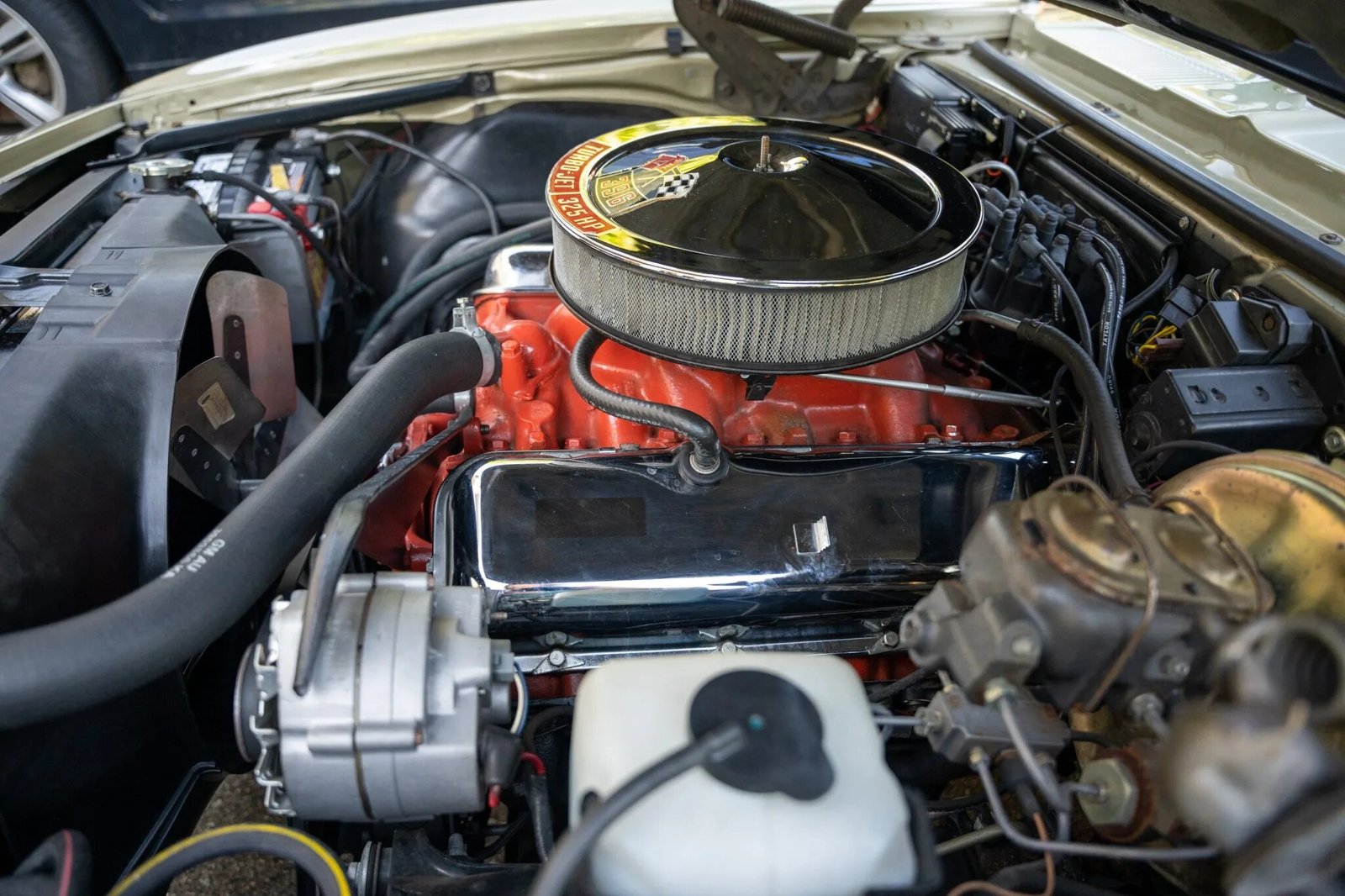 Woodgrain trim adorns the center stack, and additional appointments include a Delco AM radio, a heater, and optional front-seat headrests.