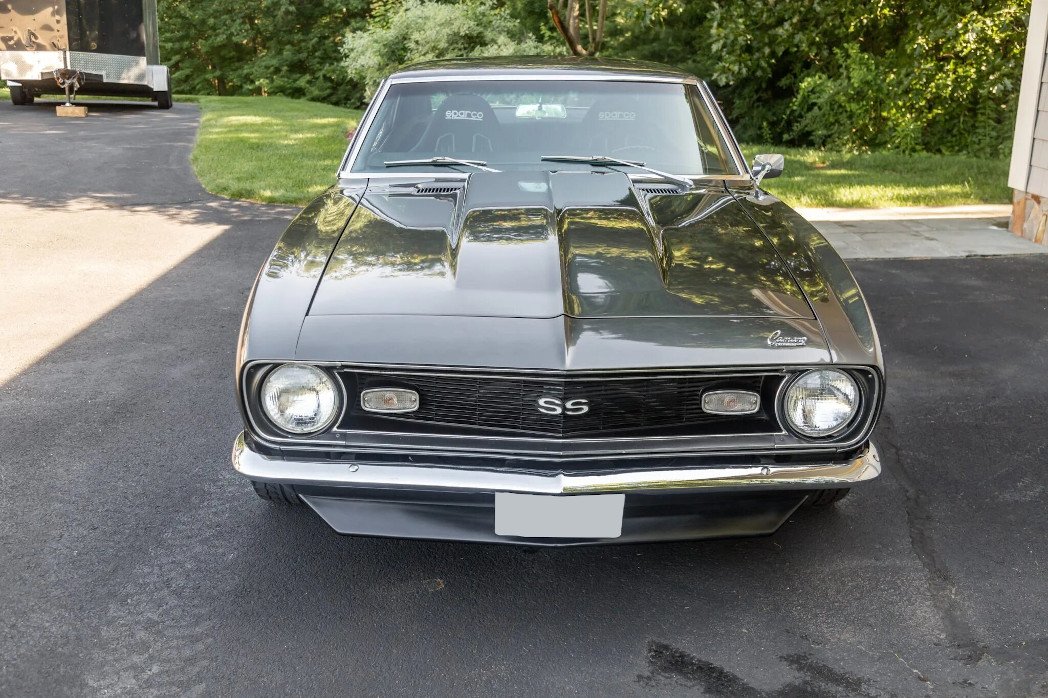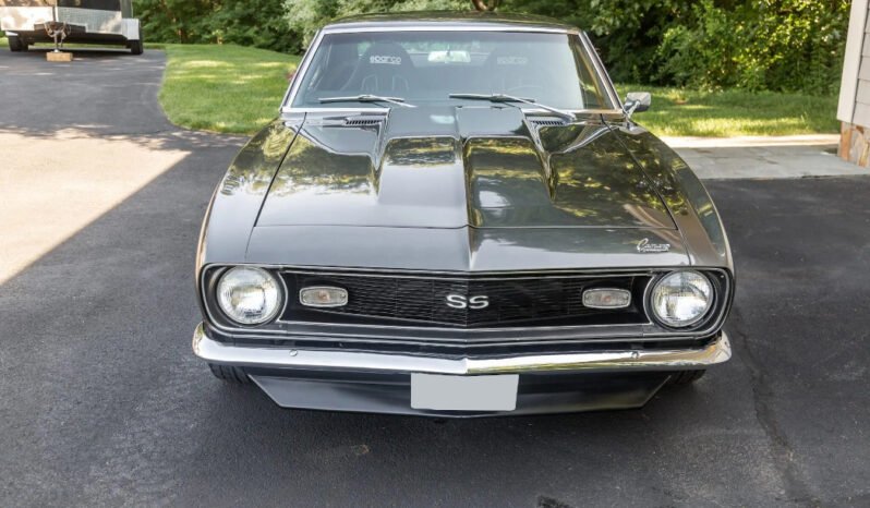 Exterior details include a chin spoiler, chrome-finished bumpers and trim, SS badging, a cowl induction hood, a driver-side mirror, and a decklid spoiler.