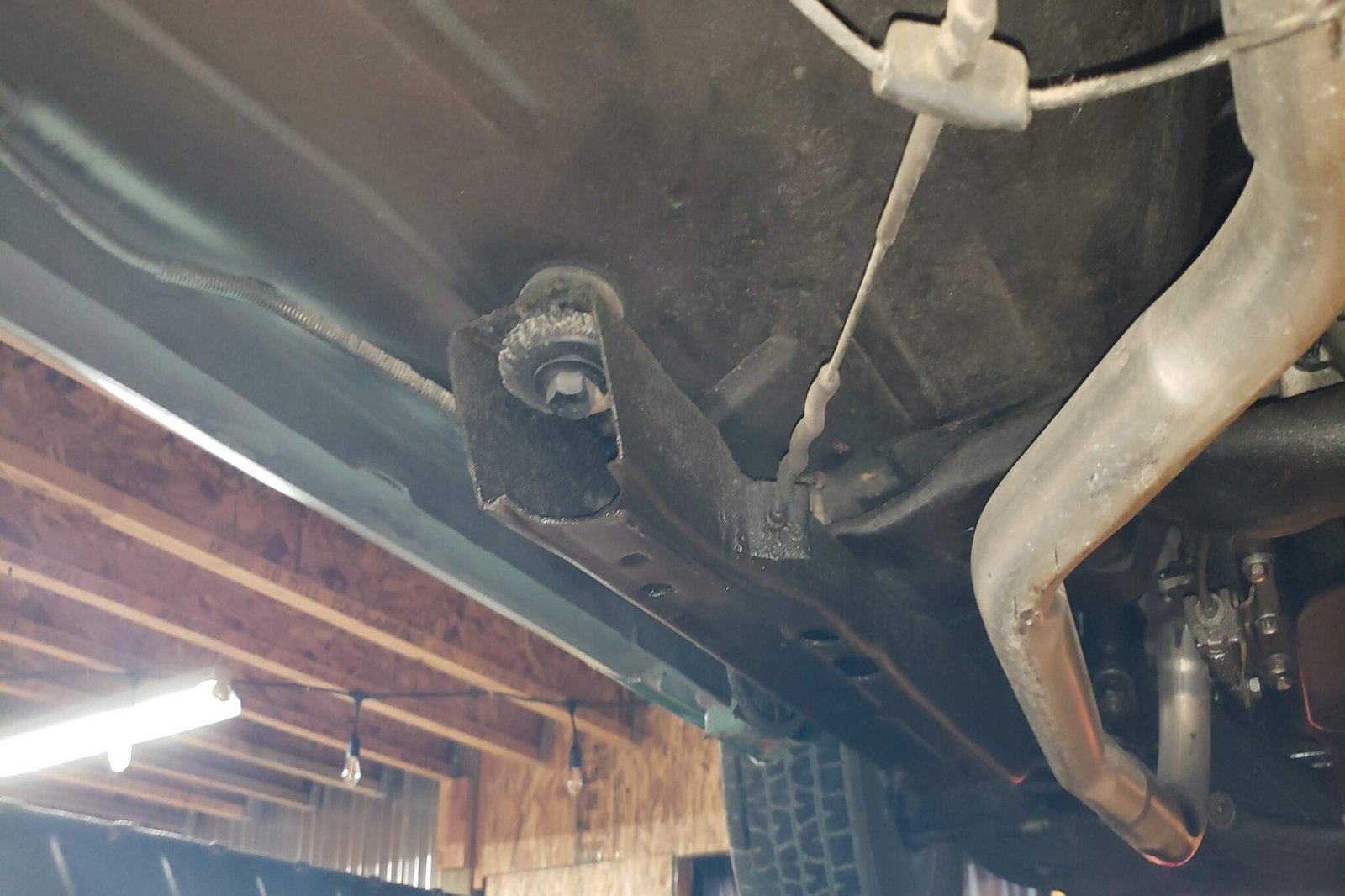 Silver-finished 15” Rally steel wheels wear chrome center caps and beauty rings and are mounted with BFGoodrich Radial T/A white-letter tires. The car is equipped with multi-leaf rear springs, and braking is handled by power-assisted front discs and rear drums.