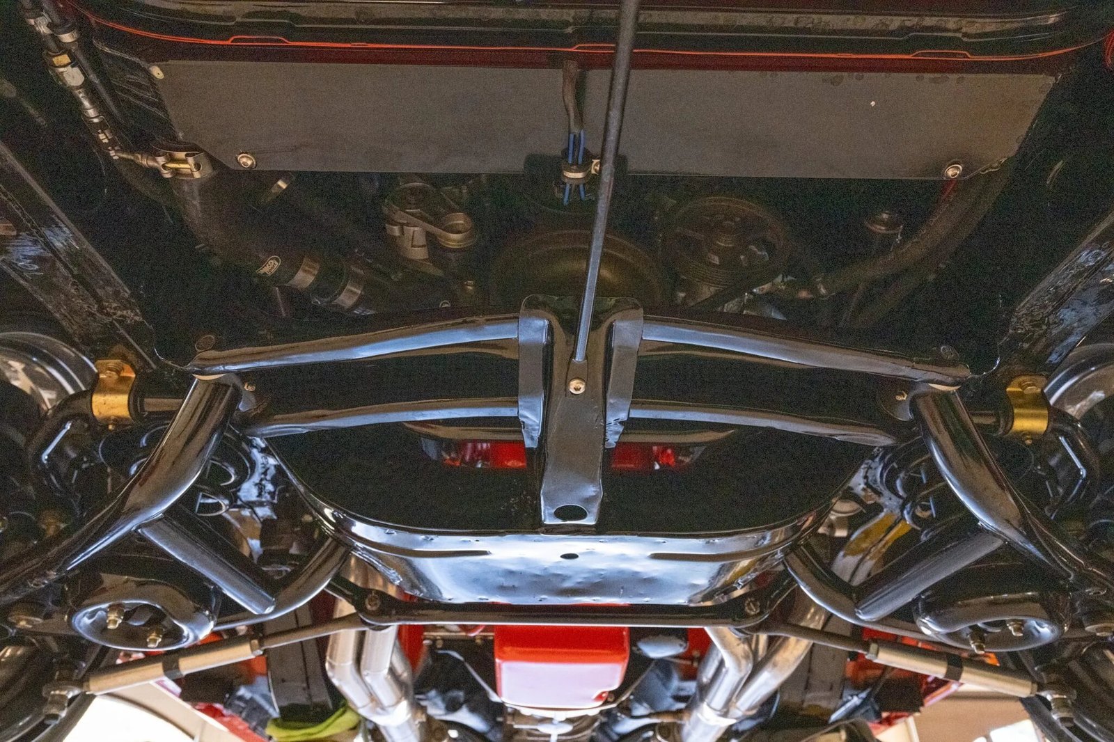 Power is sent to the rear wheels through a five-speed Tremec TKO 600 manual transmission and a 12-bolt Moser rear axle with a 3.42:1 Eaton Truetrac differential.