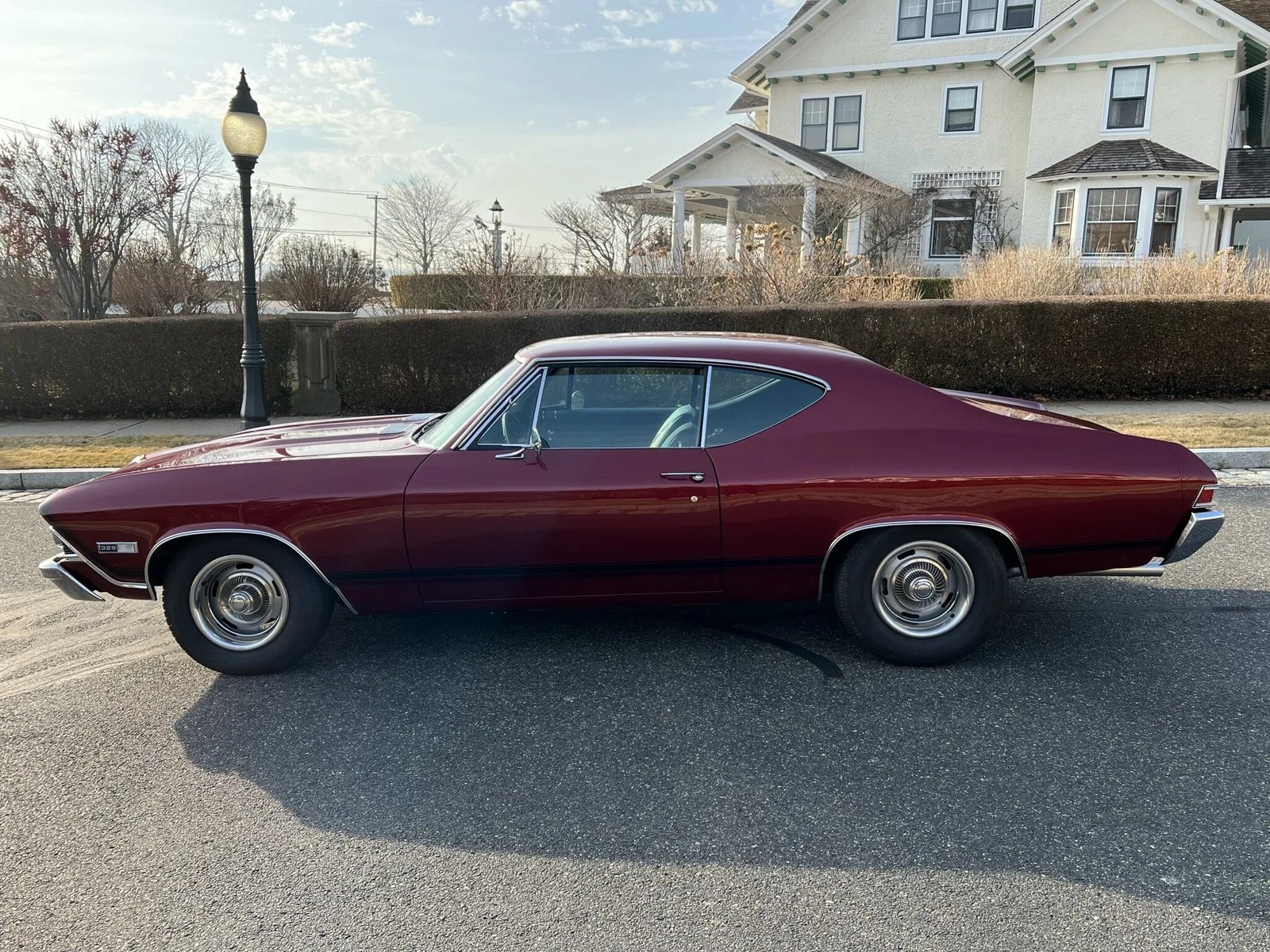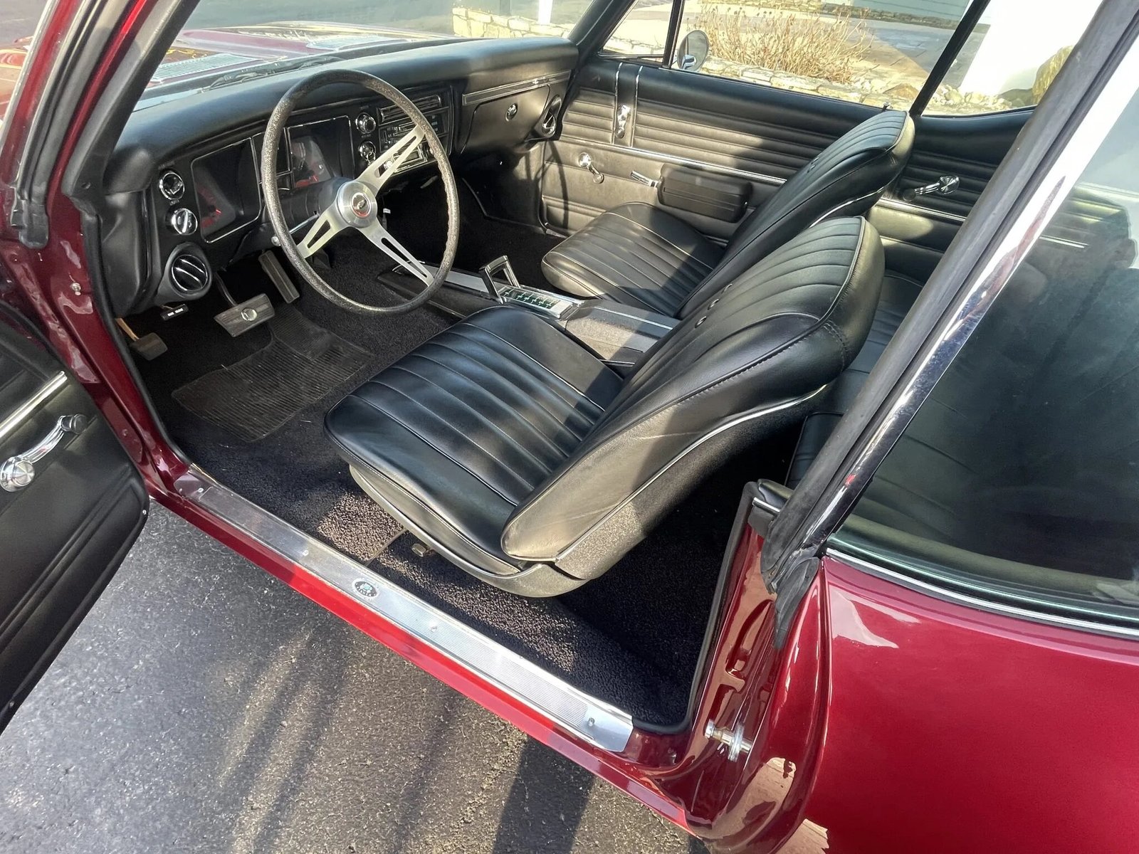 This 1968 Chevrolet Chevelle coupe was modified and refurbished approximately eight years ago, including installation of a 5.7-liter LT1 V8 and four-speed 4L60E automatic transmission. The car was repainted dark red over a black interior and is equipped with a 10-bolt rear end, four-wheel disc brakes with Hydroboost, SS badging, Dakota Digital gauges, an aftermarket stereo system, 15″ Rally-style wheels, a dual exhaust system, and air conditioning.
