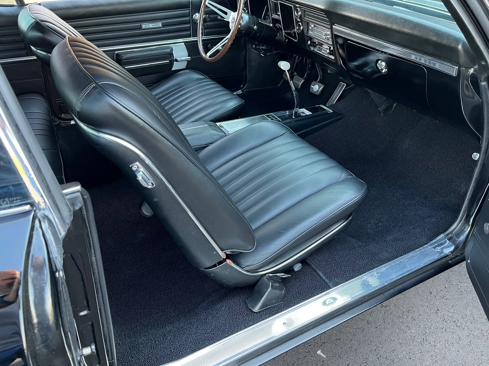 The 396ci V8 utilizes a replacement block have been sourced from a 1968 Chevrolet Impala and was built by Borchardt Speed Automotive in 2012. A safety inspection and oil change were performed in preparation for sale. Power is sent to the rear wheels through a four-speed manual transmission and a 12-bolt Positraction rear axle with 3.31:1 gears. The dual exhaust system features Flowmaster mufflers and an H-pipe.