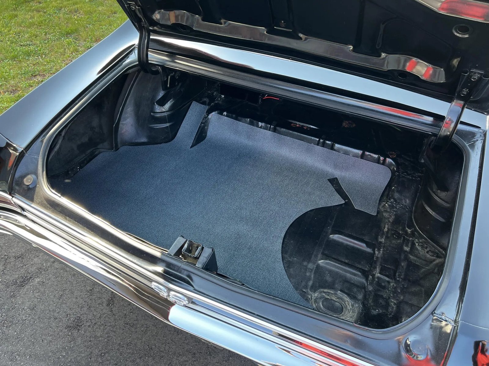 Black-painted 15” Rally-style wheels wear chrome trim rings and hubcaps and are mounted with 255/60 BFGoodrich Radial T/A tires. The car is equipped with power-assisted steering and power front disc brakes.