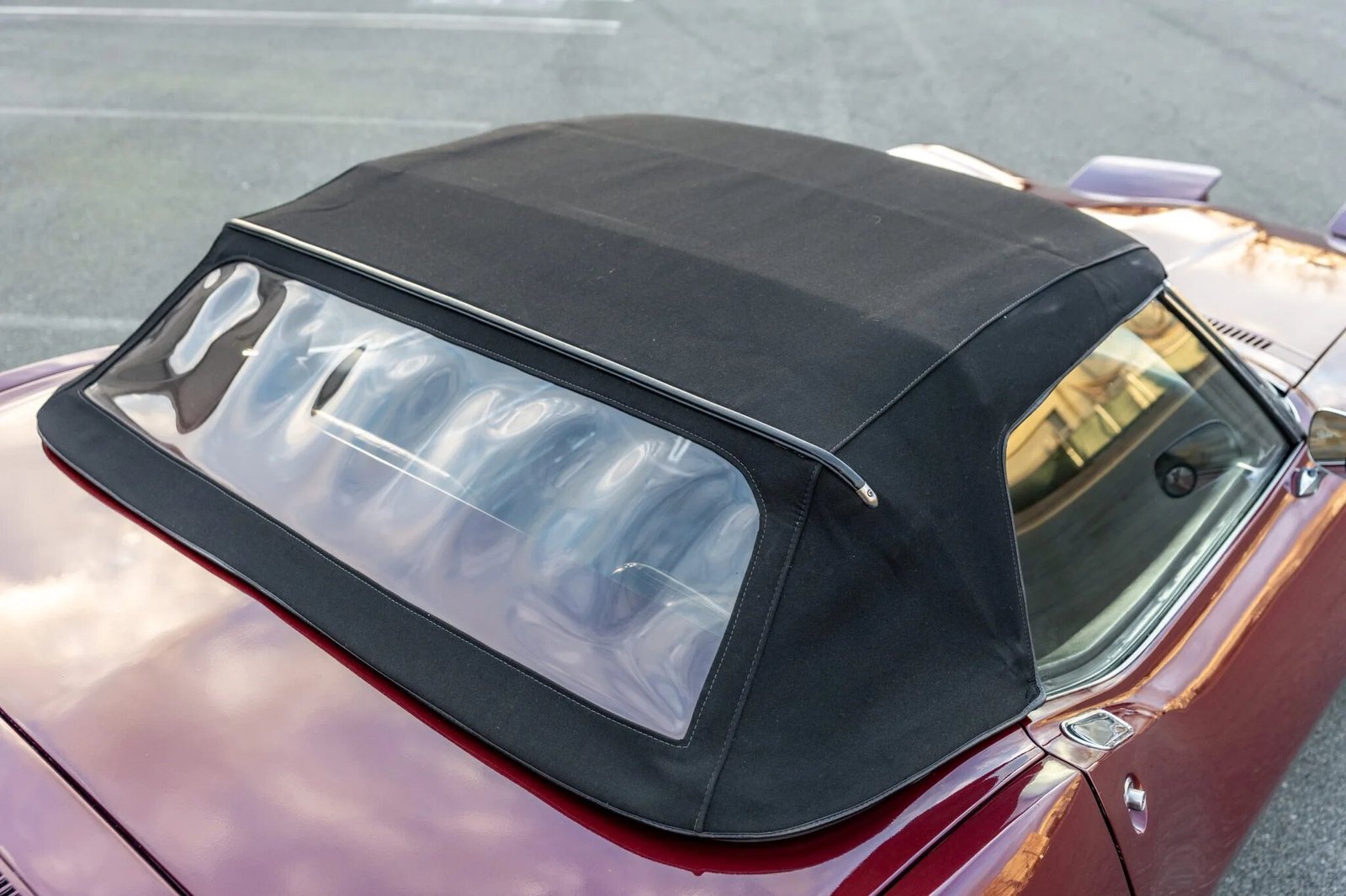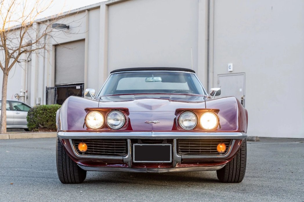 Power comes from a 327ci V8 paired with a three-speed automatic transmission, and other equipment includes a black soft top, 15″ Rally wheels, four-wheel disc brakes, and an AM/FM radio.