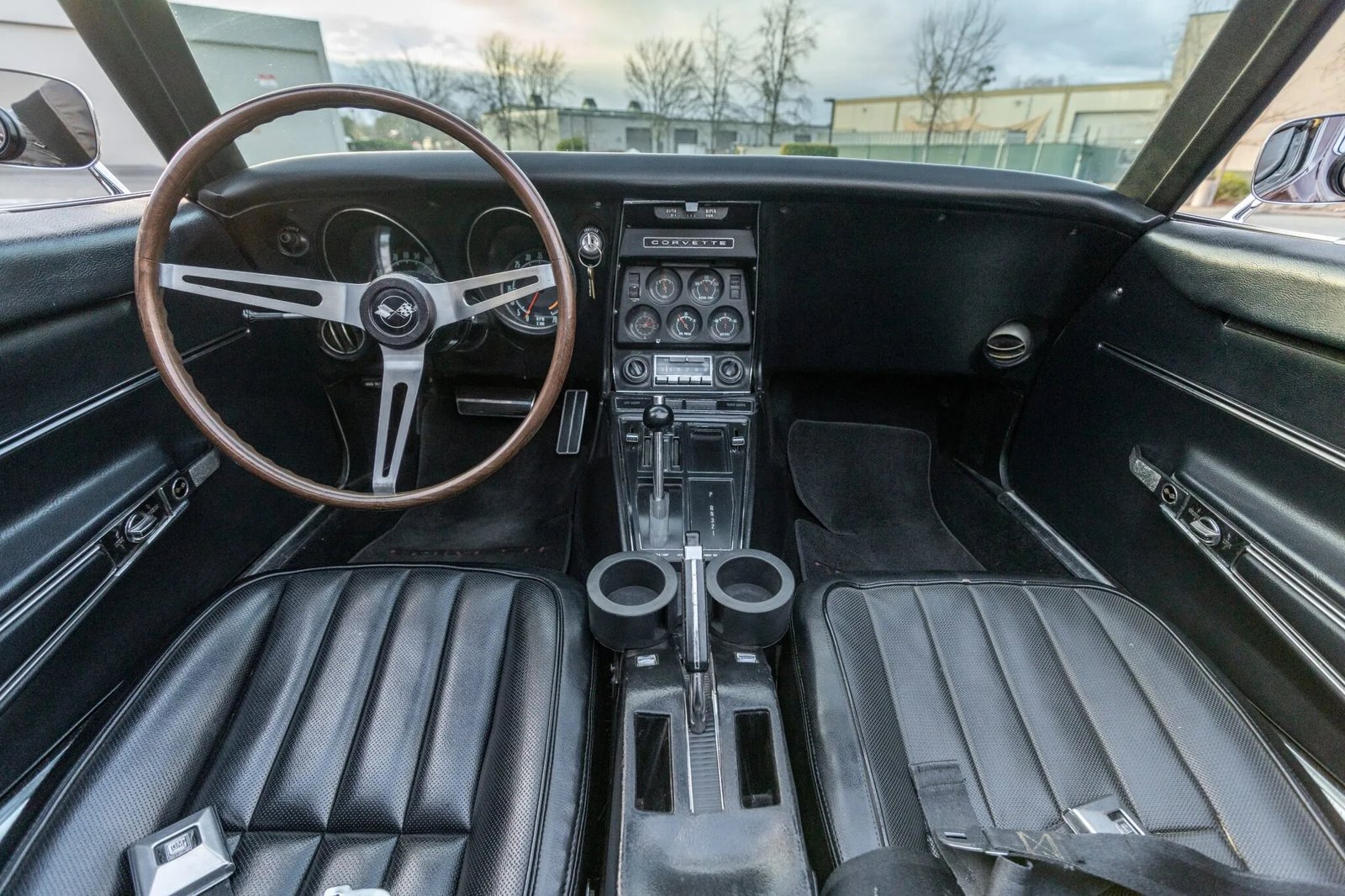 The interior features bucket seats with black upholstery complemented by matching door panels, carpeting, and trim.
