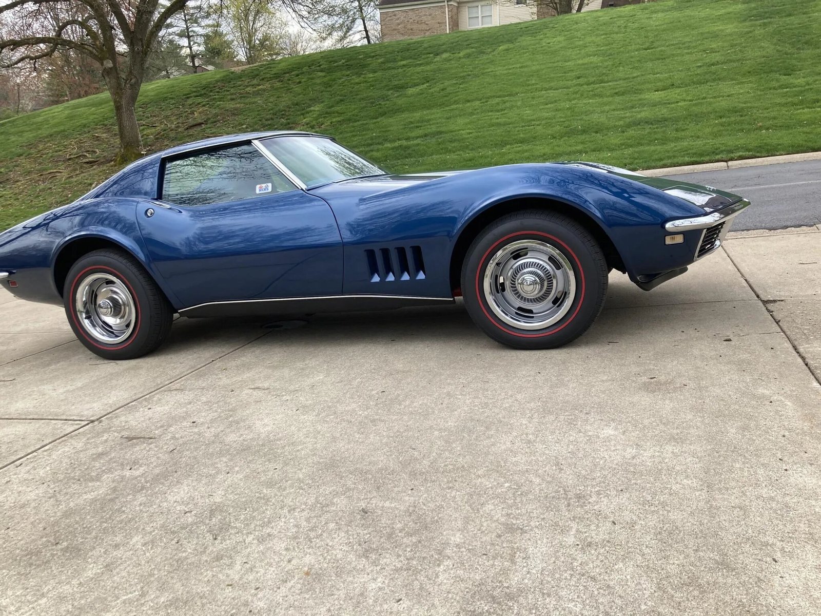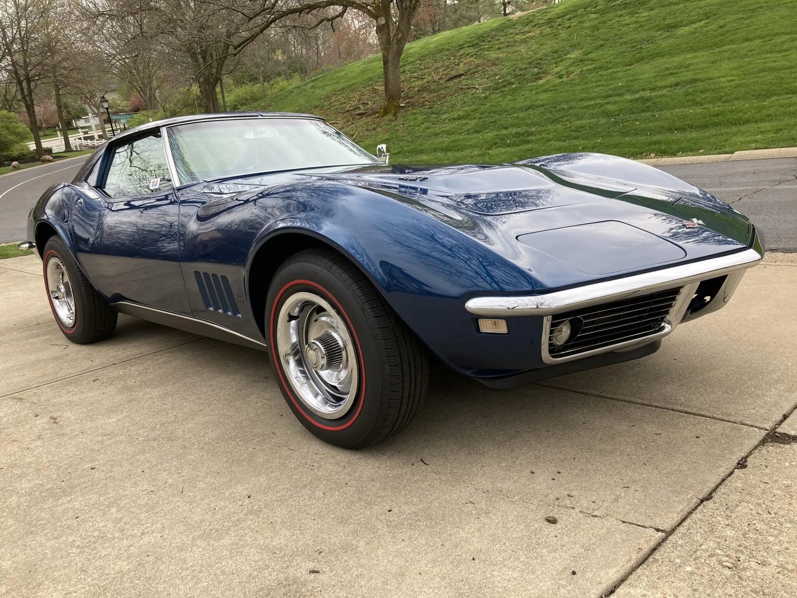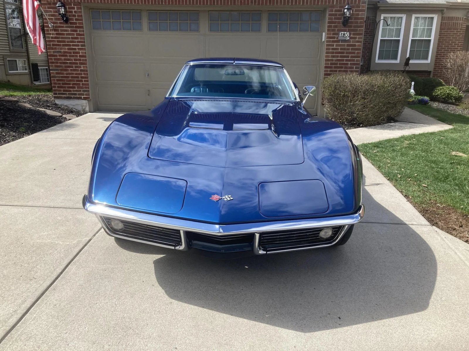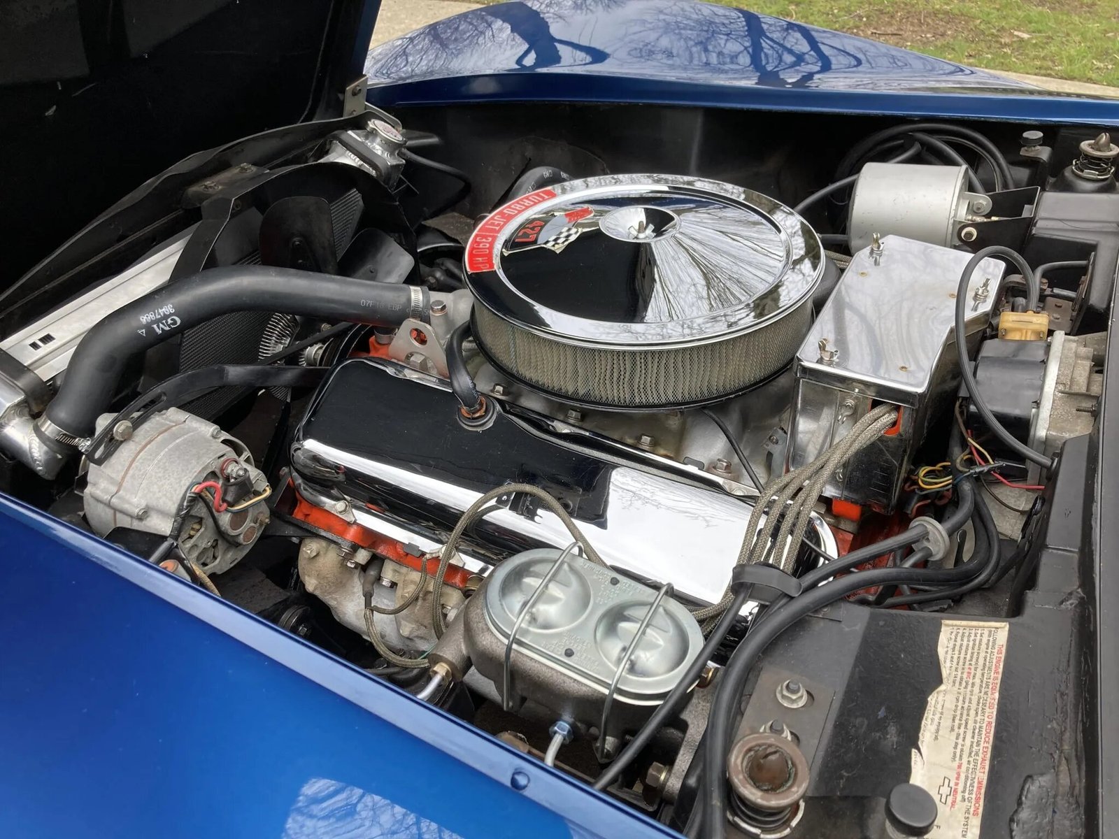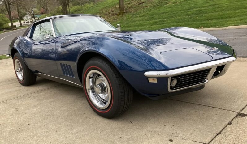 Finished in International Blue over blue vinyl, the car is powered by a 427ci V8 paired with a four-speed manual transmission.