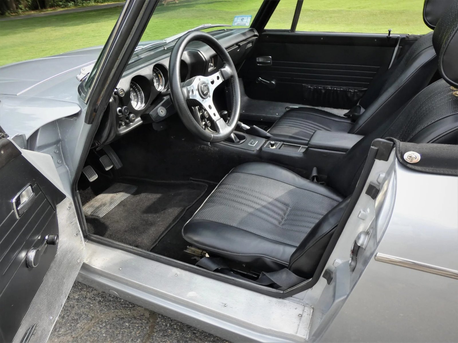 Equipment includes 15″ Panasport wheels, a removable hardtop, chrome bumpers and trim, a front spoiler, a Grant steering wheel, and an AM radio. An oil change was recently performed.