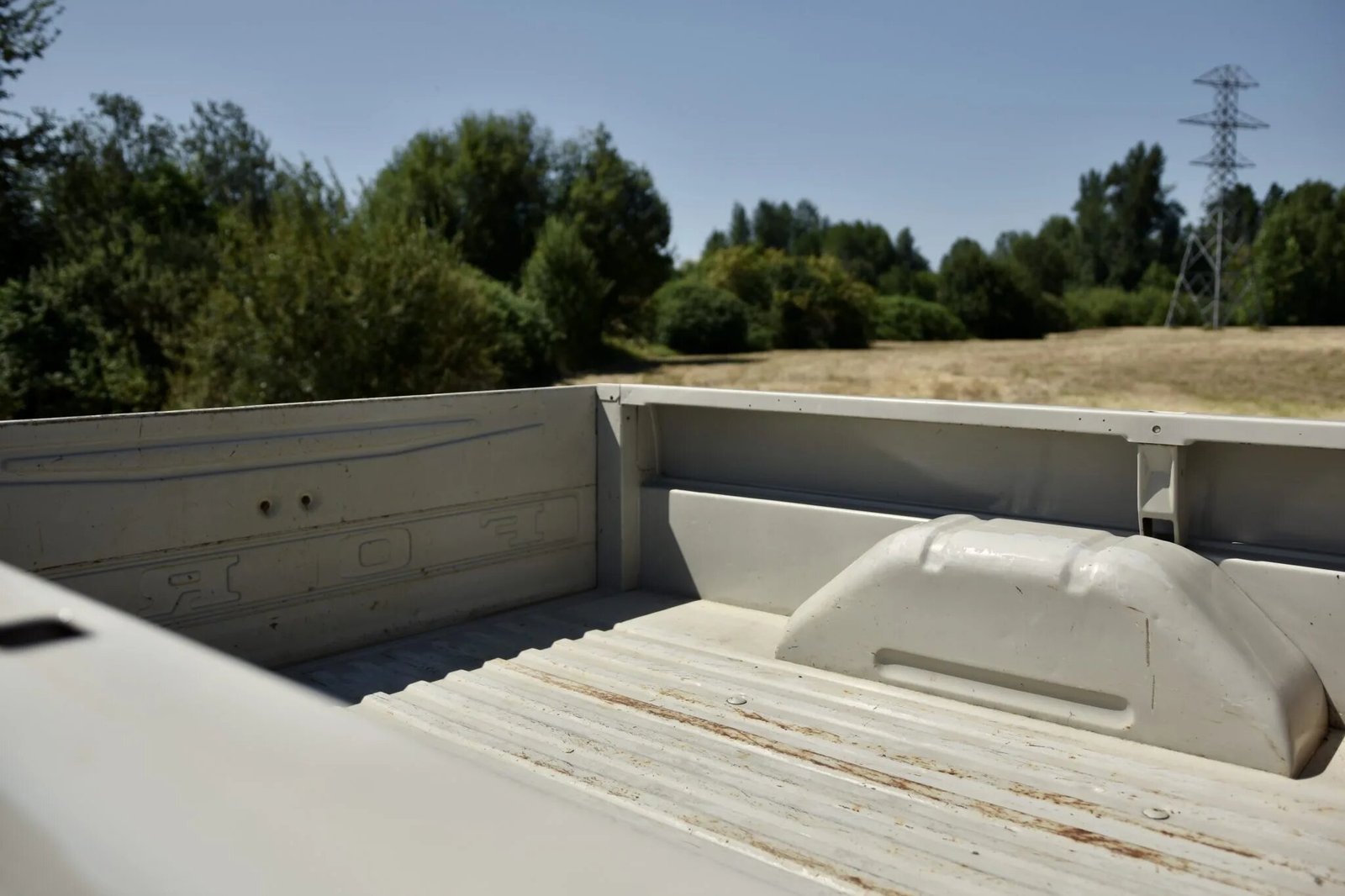 Equipment includes power steering and brakes, tow mirrors, a rear step bumper, a trailer hitch receiver, and a Dana 60 rear axle, while modifications consist of a retro-style radio.