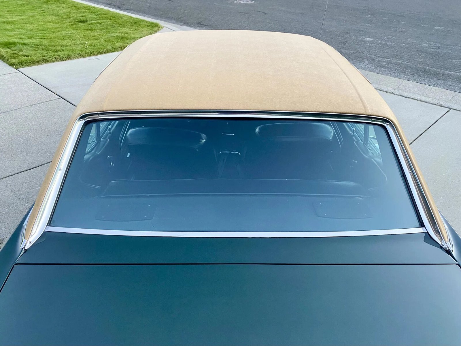 Features include a tan vinyl roof, gold “C-stripes”, grille-mounted driving lamps, wheel arch and rocker molding trim, chrome bumpers, dual mirrors, faux rear quarter scoops, reverse lamps, and a dual-outlet exhaust that exits below the rear bumper.