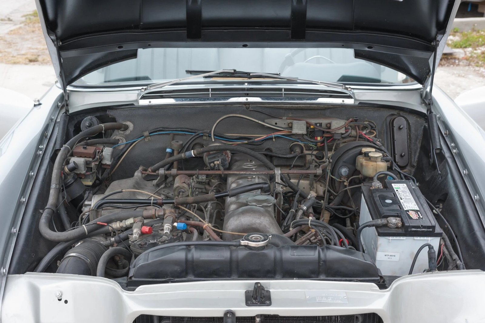 A bare-metal repaint in the original shade of Silver Metallic (180) was performed in 2014 following minor rust repair.