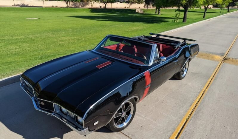 This 1968 Oldsmobile Cutlass S convertible is finished in black over red and powered by a replacement 459ci V8 paired with a 200-4R four-speed automatic transmission and a 3.42:1 Positraction rear differential.