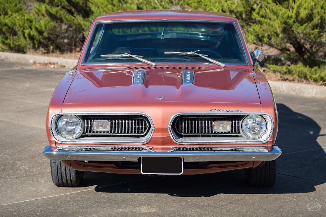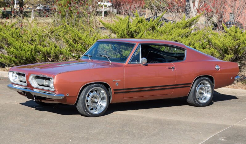 This particular car is finished in the correct original Bronze Metallic with black side stripes, and its original black interior in remarkable condition. Console, floor shift and fold down rear seat make the Barracuda a desirable pony car.