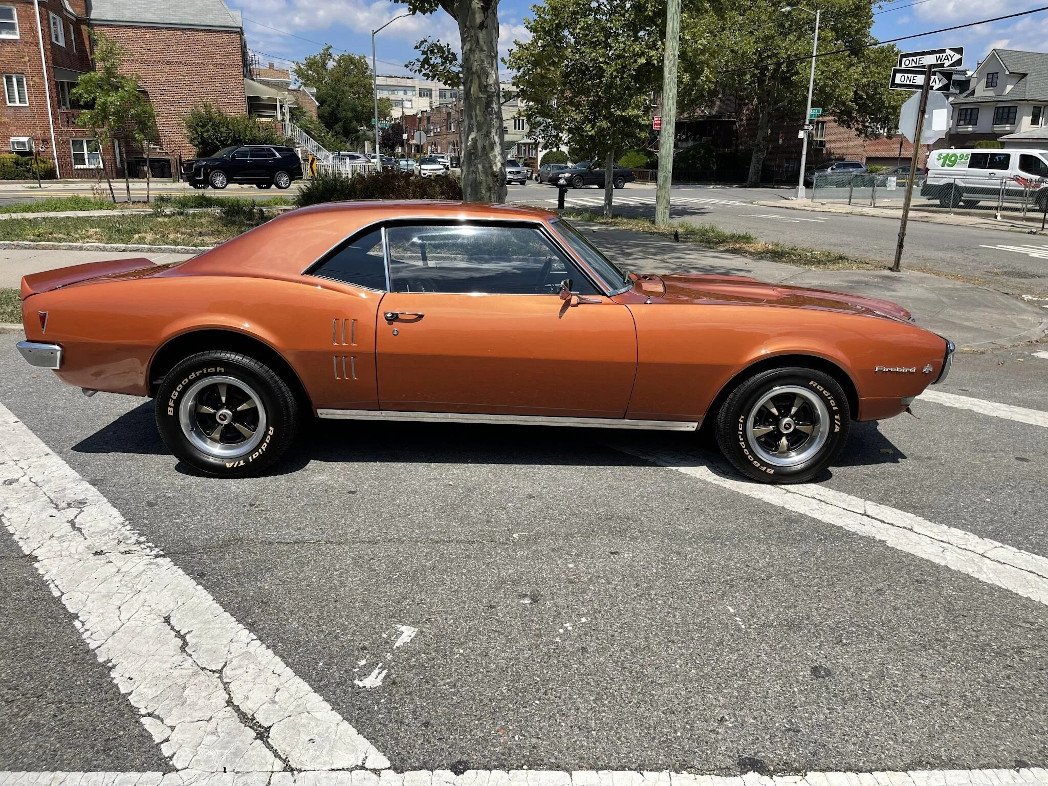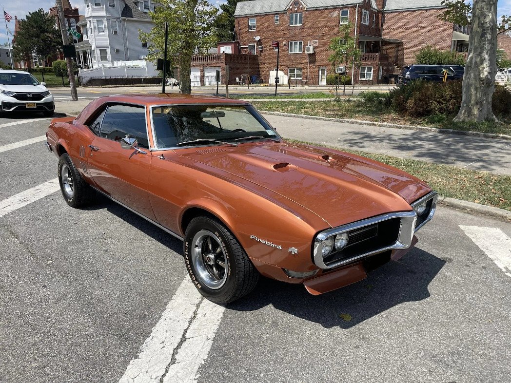 The car is finished in Autumn Bronze and features chrome bumpers, dual side mirrors, a Firebird 400-style hood, a rear spoiler, halogen headlights, and simulated quarter panel vents.