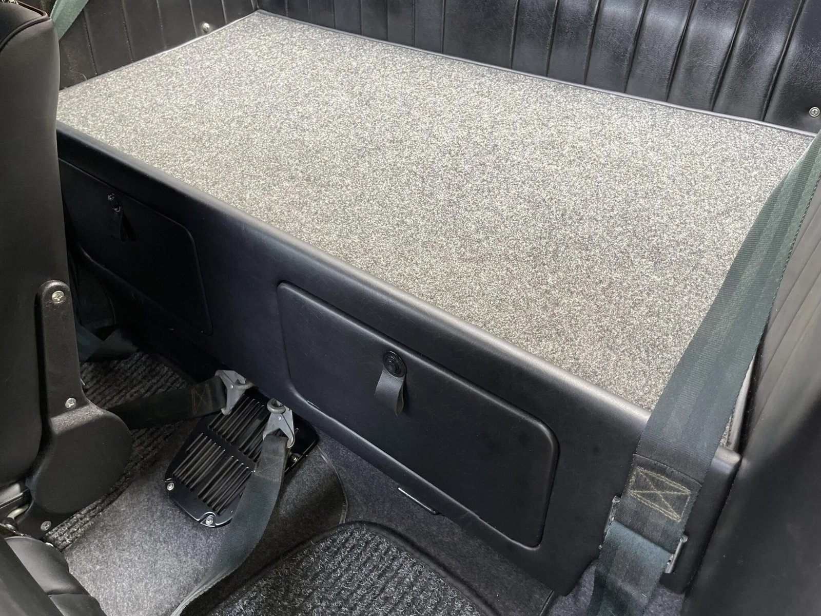 The rear shelf tray with storage compartments was reupholstered, and the dash was refurbished and wired for a Blaupunkt radio, though a radio blanking plate is currently fitted.