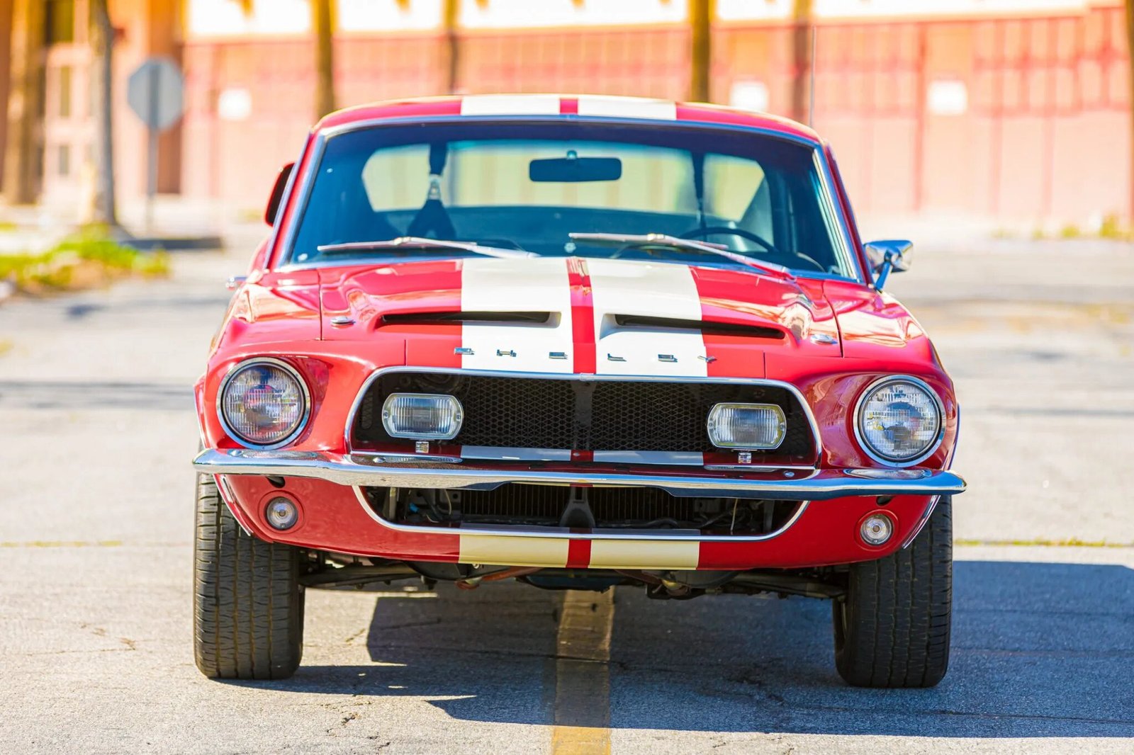 The 302ci V8 is topped with a four-barrel Holley carburetor and a Cobra-branded air cleaner and valve covers.