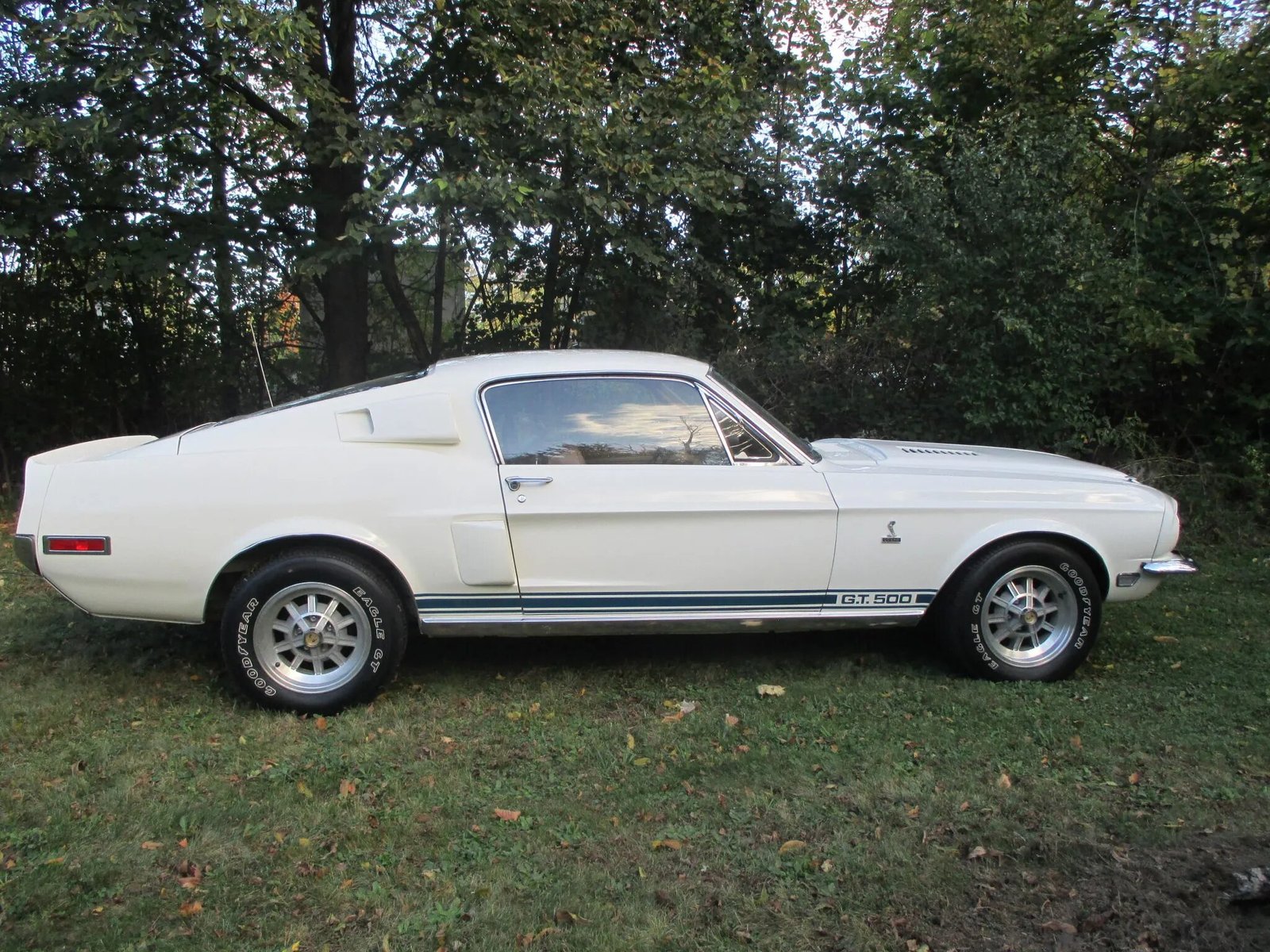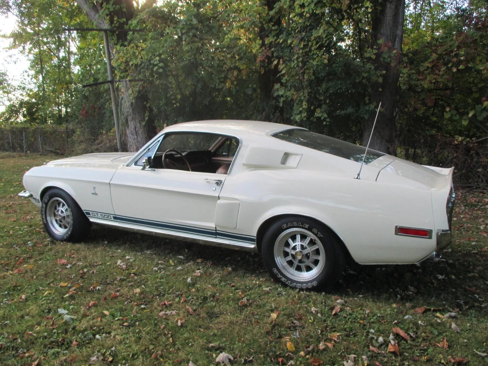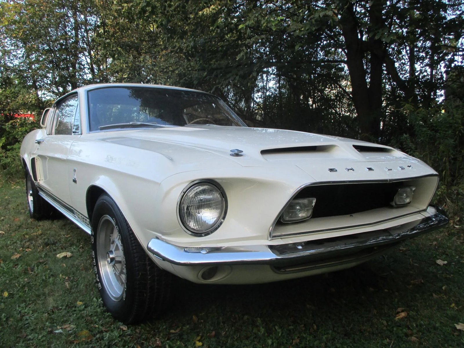 This 1968 Shelby Mustang GT500 is one of 1,020 fastback examples produced for the model year and was completed on December 19, 1967, at Ford’s Metuchen, New Jersey, plant. It underwent a refurbishment in the 1990s, the car is finished in Wimbledon White with blue side stripes over Saddle vinyl upholstery, and power comes from a 428ci V8 paired with a C6 three-speed automatic transmission. Features include power-assisted steering and front disc brakes, 15″ 10-spoke wheels, a tilt-away steering column, shoulder harnesses, a Philco AM radio, and the Interior Décor and Visibility Group packages.