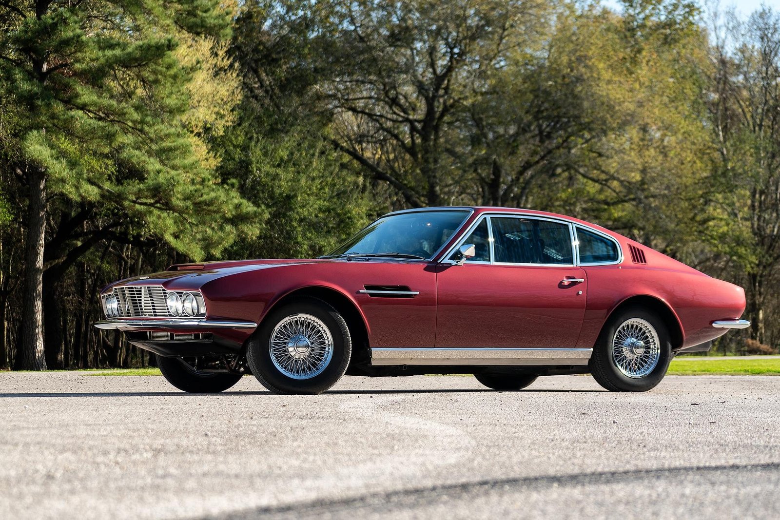 This Aston Martin DBS is a left-hand drive example that was built on February 7, 1969. Power comes from a numbers-matching 4.0-liter straight-six that is equipped with triple Weber carburetors and paired with a five-speed manual transmission.