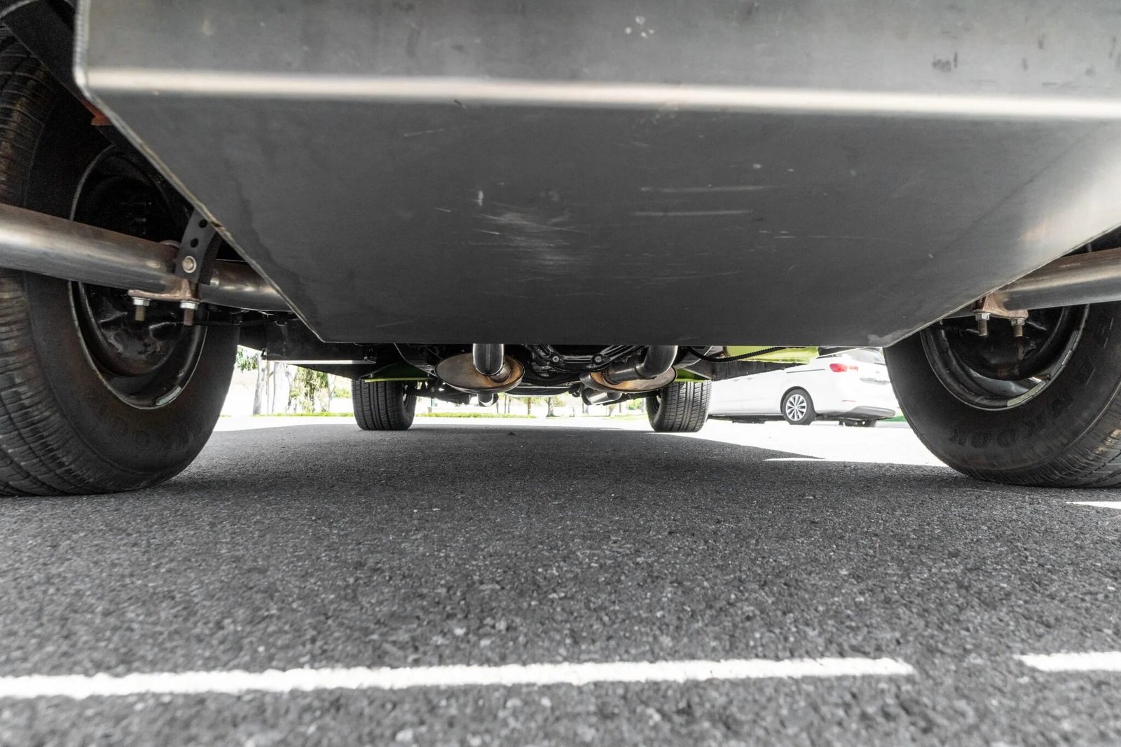 The brake system has been modified and features a CPP power brake booster with custom lines, front discs, and rear drums.
