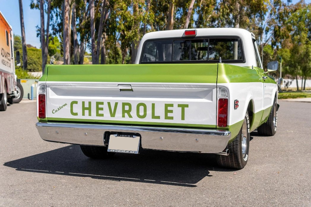 Finished in metallic green and white over a black interior, the truck is powered by a replacement 350ci V8 paired with a four-speed 700R4 automatic transmission.