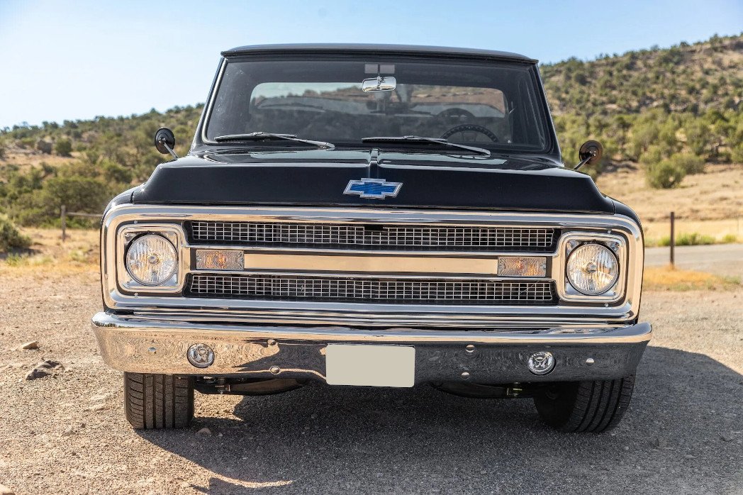 The rear ride height is lowered approximately 5″ using drop coils, replacement shocks, and a C-notched frame, while the front is lowered 2.5″ using drop spindles along with replacement shocks, ball joints, and tie-rod ends.