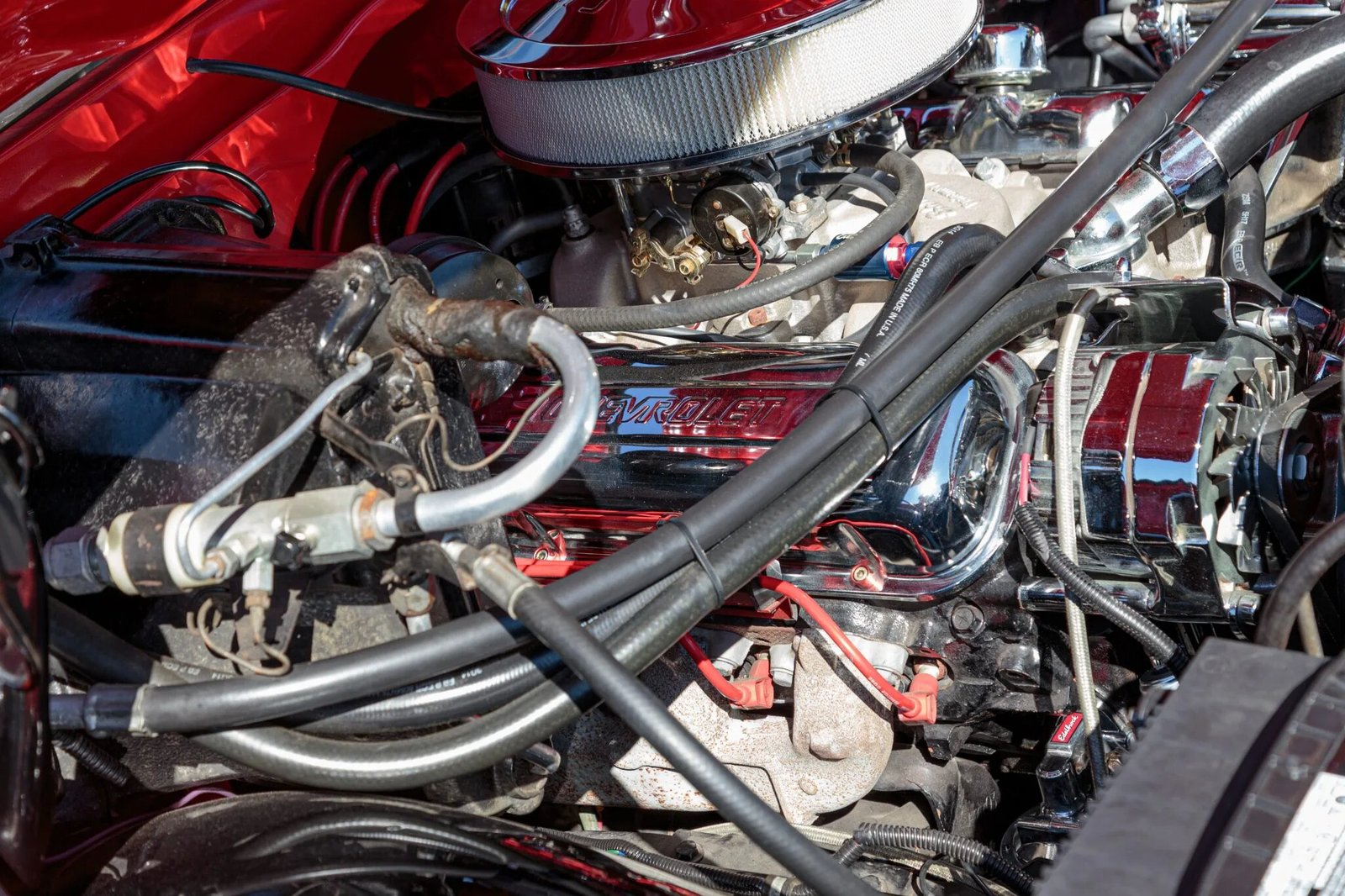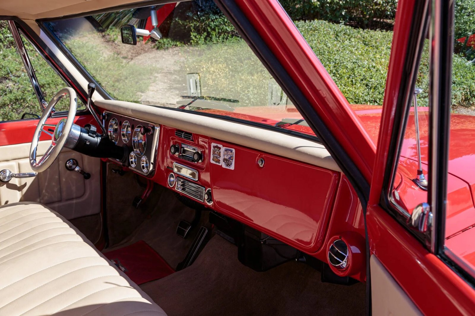 The exterior was refinished in red with chrome trim, the interior was reupholstered with beige leather, and a 454ci V8 paired with a three-speed automatic transmission was installed.