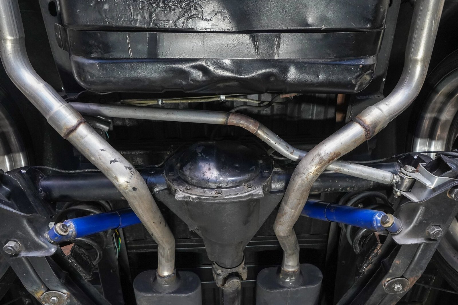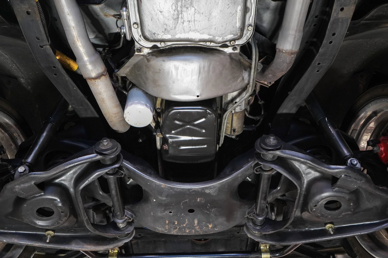 Stopping power is provided by four-wheel discs with red-painted calipers, a Wilwood dual master cylinder, and hydroboost.